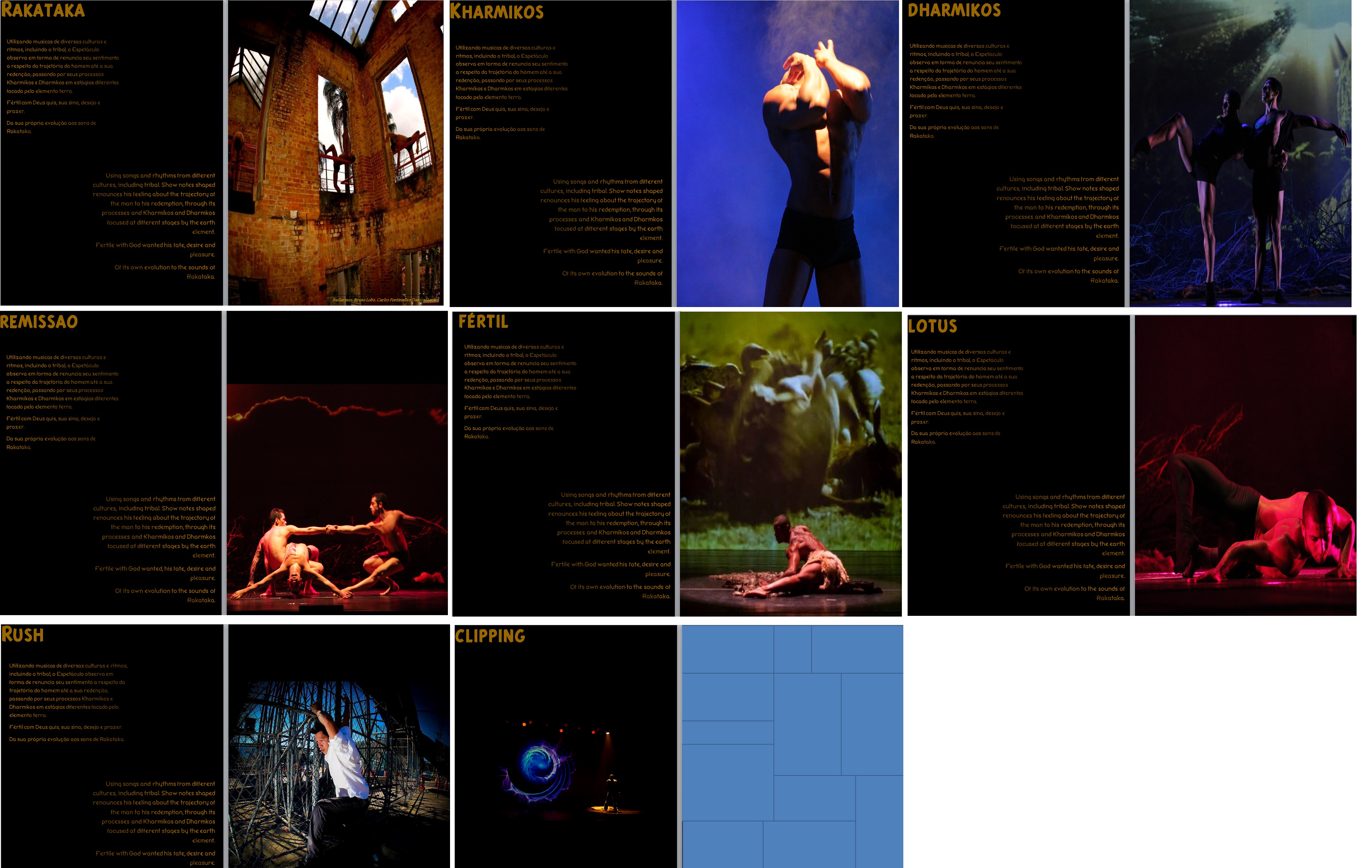 Usando músicas de todas as culturas e ritmos, expressam, em forma de renúncia, seu sentimento a respeito do homem, sua vida, emoções e atos. Com esse objetivo, a Caio Nunes companhia de Dança se reúne em uma oficina de trabalho, onde praticam e montam um espetáculo com coreografias e/ou textos.