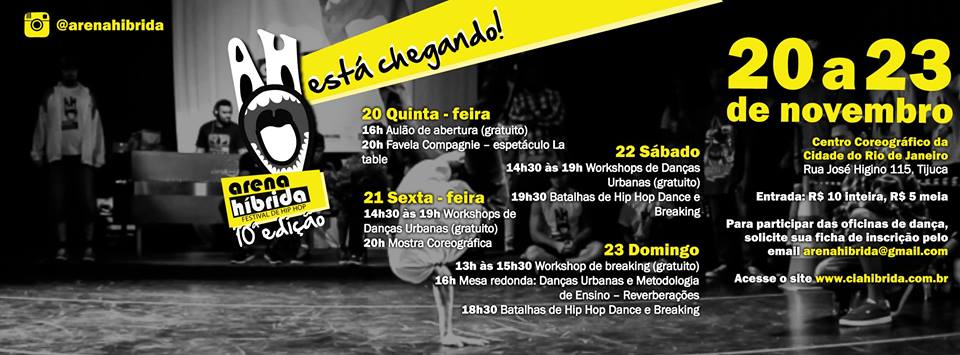 Inscrições para oficinas, batalhas e mostras: arenahibrida@gmail.com