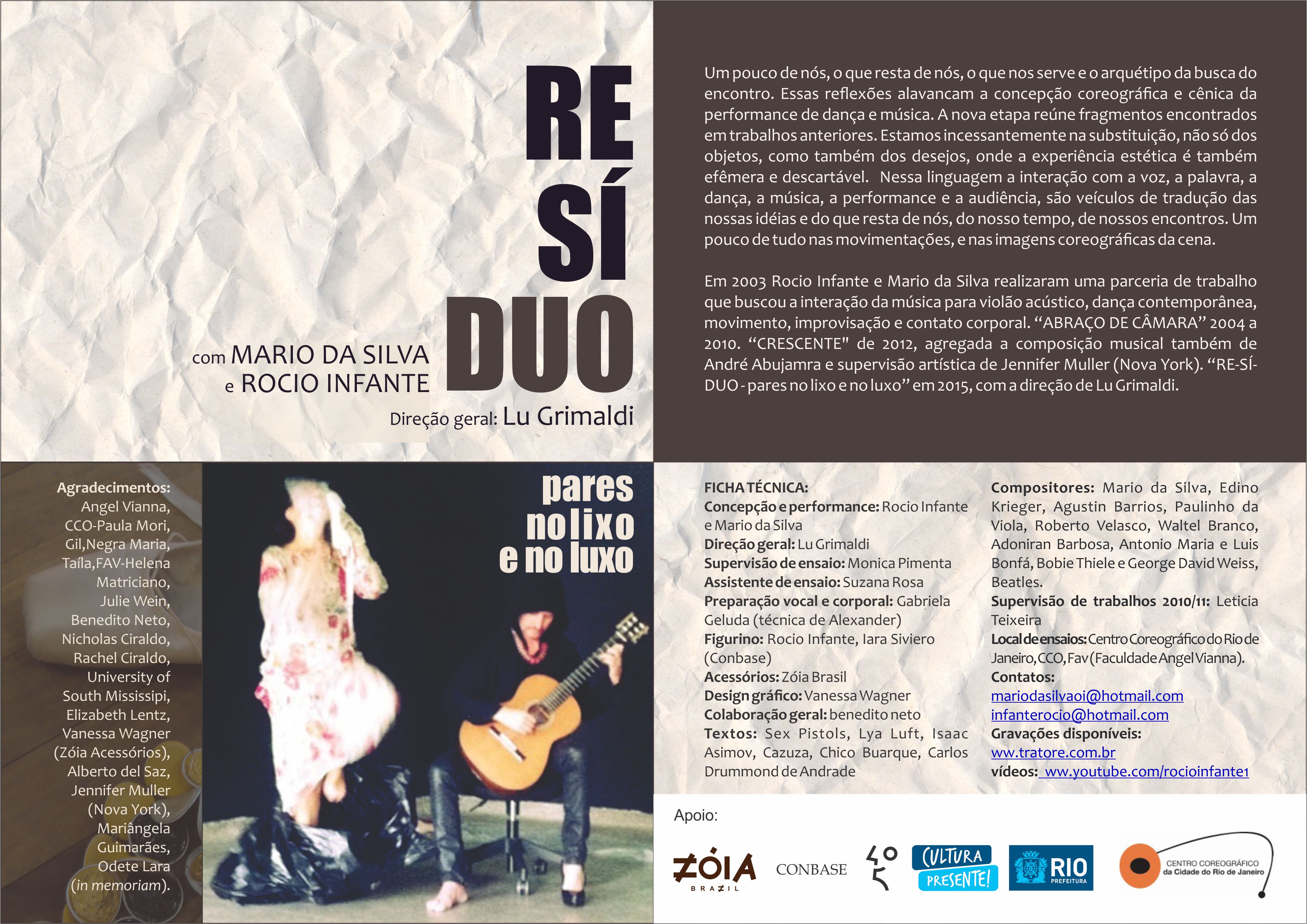 “RE-SÍ-DUO – pares no lixo e no luxo” em 2015, com a direção de Lu Grimaldi.