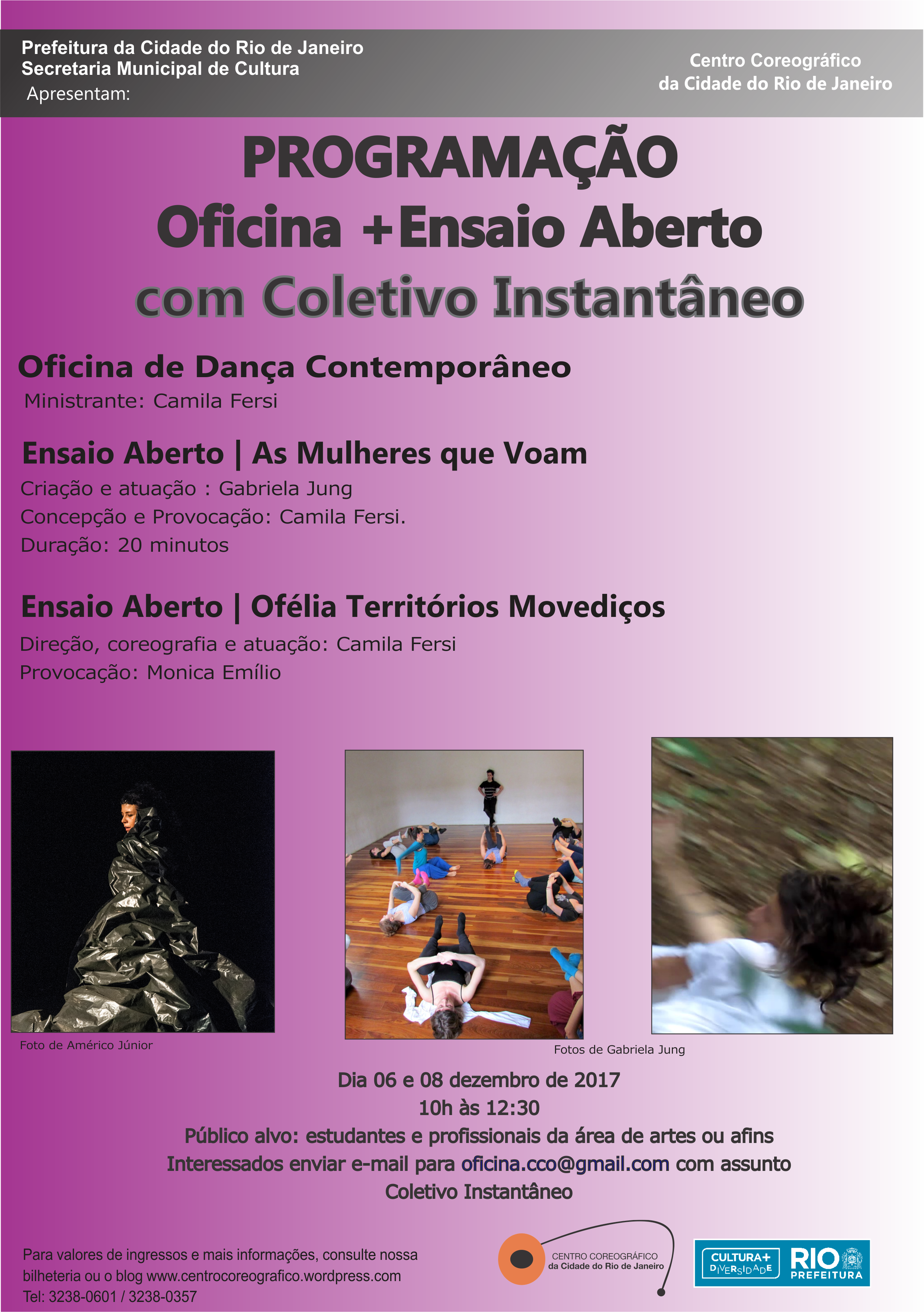 – Todas as oficinas do Centro Coreográfico da Cidade do Rio de Janeiro estão sujeitas a lotação de acordo com o número de vagas estabelecido.