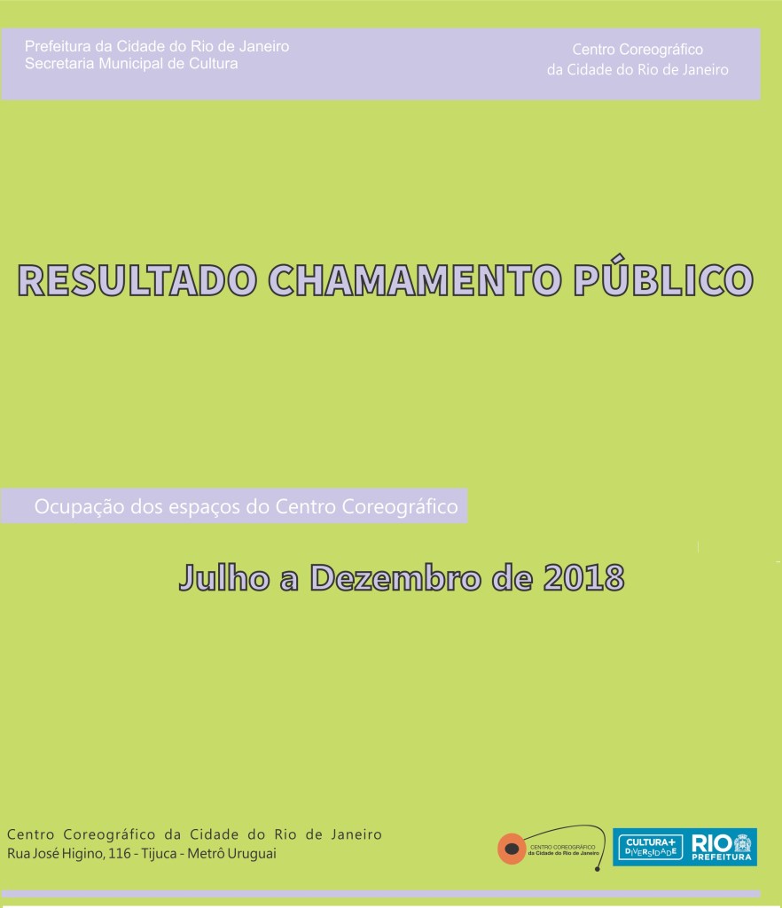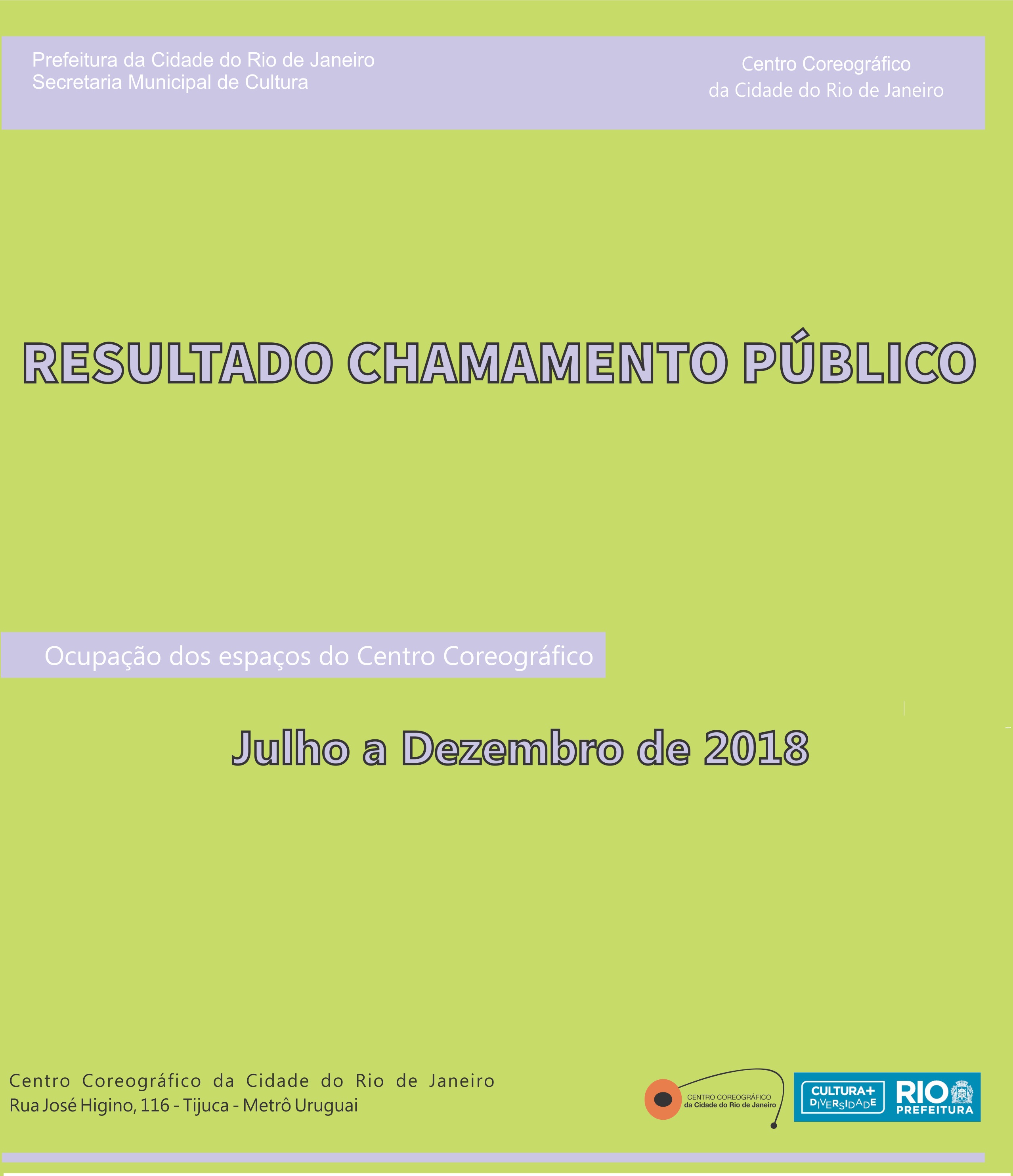 A Secretaria Municipal de Cultura, por intermédio do Centro Coreográfico da cidade do Rio de Janeiro, recebeu entre os dias 14 de maio e 16 de junho, propostas para ocupação artística a serem realizadas ao longo do segundo semestre de 2018.