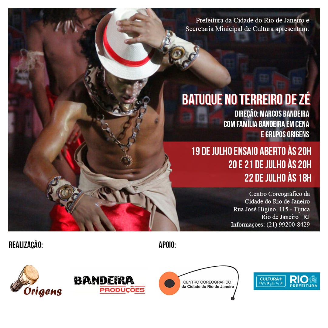 A criação deste espetáculo surgiu a partir da repercussão na apresentação do maior concurso de samba no pé “Brasil Samba Congress” realizado na Casa de Espanha, ao ser postado nas redes sociais em fevereiro de 2018. A partir daí, o grupo Origens iniciou um laboratório para criação deste novo espetáculo que trás o ritmo, beleza e essência africana com o intuito de chocar o público desde a trilha sonora e a sua execução, com um balé com mais de 15 pessoas no elenco e Marcos Bandeira como personagem principal. A história vem para identificar o negro, suas raízes ancestrais e todo esse axé que a gente carrega no próprio corpo. Serão três dias de espetáculo e oficinas (Jongo-capoeira-maculelê-samba de roda).