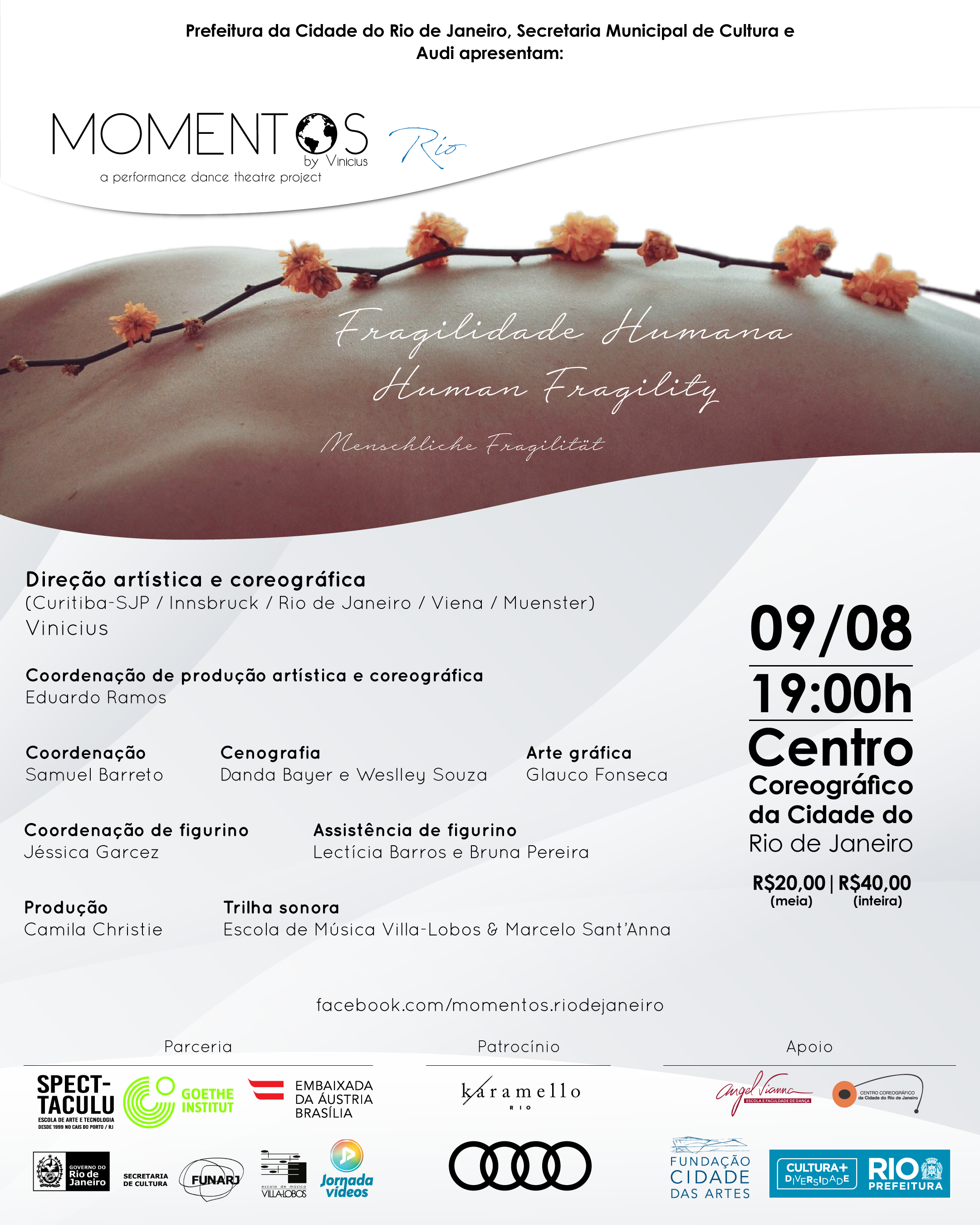 O projeto de performance Momentos foi idealizado pelo diretor e produtor artístico e coreógrafo Vinicius e estreado no verão de 2011 na cidade de Viena. Com o sucesso do projeto ele foi implantado posteriormente no ano de 2013 na cidade de Innsbruck, também na Áustria, 2015 no Rio de Janeiro e 2017 Curitiba e S. José dos Pinhais. Em cada série é dançado um tópico, coreografado e transformado num produto final deste laboratório para uma performance de palco. Por último ele é apresentado a uma plateia como uma peça de dança teatro, num teatro profissional na cidade de Viena, Innsbruck ou Rio de Janeiro, Curitiba ou S. José dos Pinhais. Momentos mantém o caráter de um “work in progress”, apesar do alto nível de profissionalismo, pois as verdades da vida são momentos em eternas mudanças! Outro aspecto significativo do projeto Momentos é a cooperação com outras formas de arte: a interdisciplinaridade como uma sinergia artística. O encontro com (estudantes) músicos que enriquecem a peça de dança com suas próprias composições e participação dos mesmos nas apresentações ao vivo, assim como os estudantes de cinema, vídeo, moda e fotografia permitem uma intensa troca artística nos diferente níveis sobre o tema abordado na dança, apesar do curto espaço de tempo de produção: no Rio de Janeiro em duas semanas! Pela primeira vez na história do projeto internacional de dança-teatro Momentos, as produções deste ano de todas as cidades-Momentos estão ligadas tematicamente através do título: