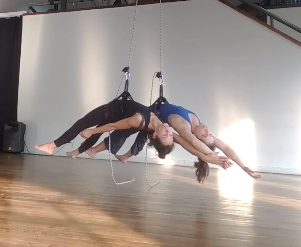 A oficina oferecerá uma vivência através dos dispositivos utilizados pela dupla residente para improvisar e criar ao longo destes meses de residência. Passaremos por vivências de toque, contato, peso-contrapeso, condução, clipadas ou soltas na corda, compartilhando e expandindo distintas compreensões sobre o conceito de corpo suspenso, entre chão e espaço.