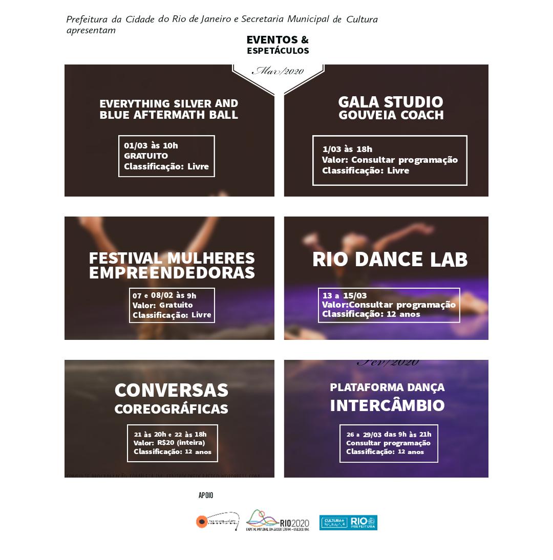 Serviço: Gala studio Gouveia Coach Data: 01 de março de 2020 Horário: às 18h Valor do Ingresso: à definir Local de venda: direta com a produção (doação de contrapartida) Classificação: Livre Duração: 2h