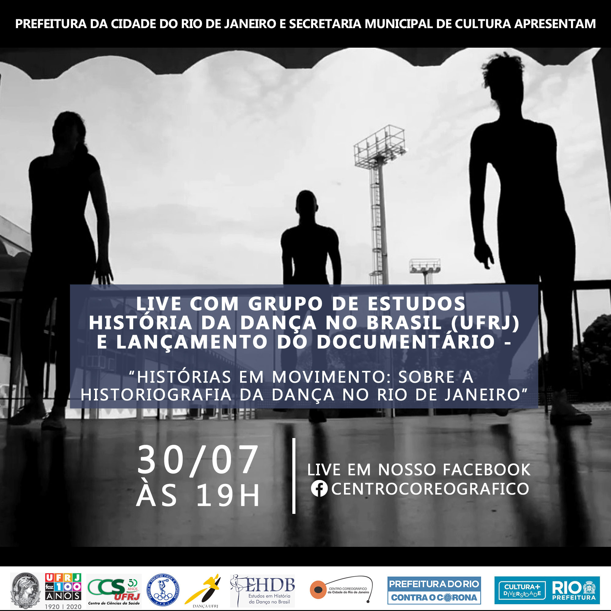 Dando continuidade ao bate papo realizado na semana anterior sobre História da Dança no Brasil, convidamos o público do CCo para participar de uma mesa redonda em nossa página do Facebook com os integrantes do grupo de pesquisa Estudos em História da Dança no Brasil. Durante essa conversa, será apresentado o trailer do documentário “Histórias em Movimento: sobre a historiografia da dança no Rio de Janeiro”, lançado por ocasião da live, e que será debatido entre os pesquisadores do grupo e o público, respondendo a dúvidas que eventualmente possam surgir. O documentário inteiro poderá ser visualizado em plataforma própria, lançada também no mesmo dia.