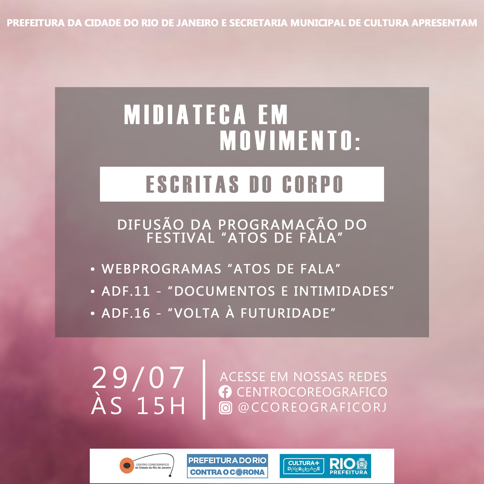 O Escritas do Corpo do dia 29 compartilhará mais uma parte da memória do Festival Atos de Fala, criado em 2011 por Felipe Ribeiro e Cristina Becker. O Festival que investiga a relação entre corpo e palavra, teve sua edição de 2019 com o título “Escapar do capataz”, realizada no Centro Coreográfico da Cidade do Rio de Janeiro.