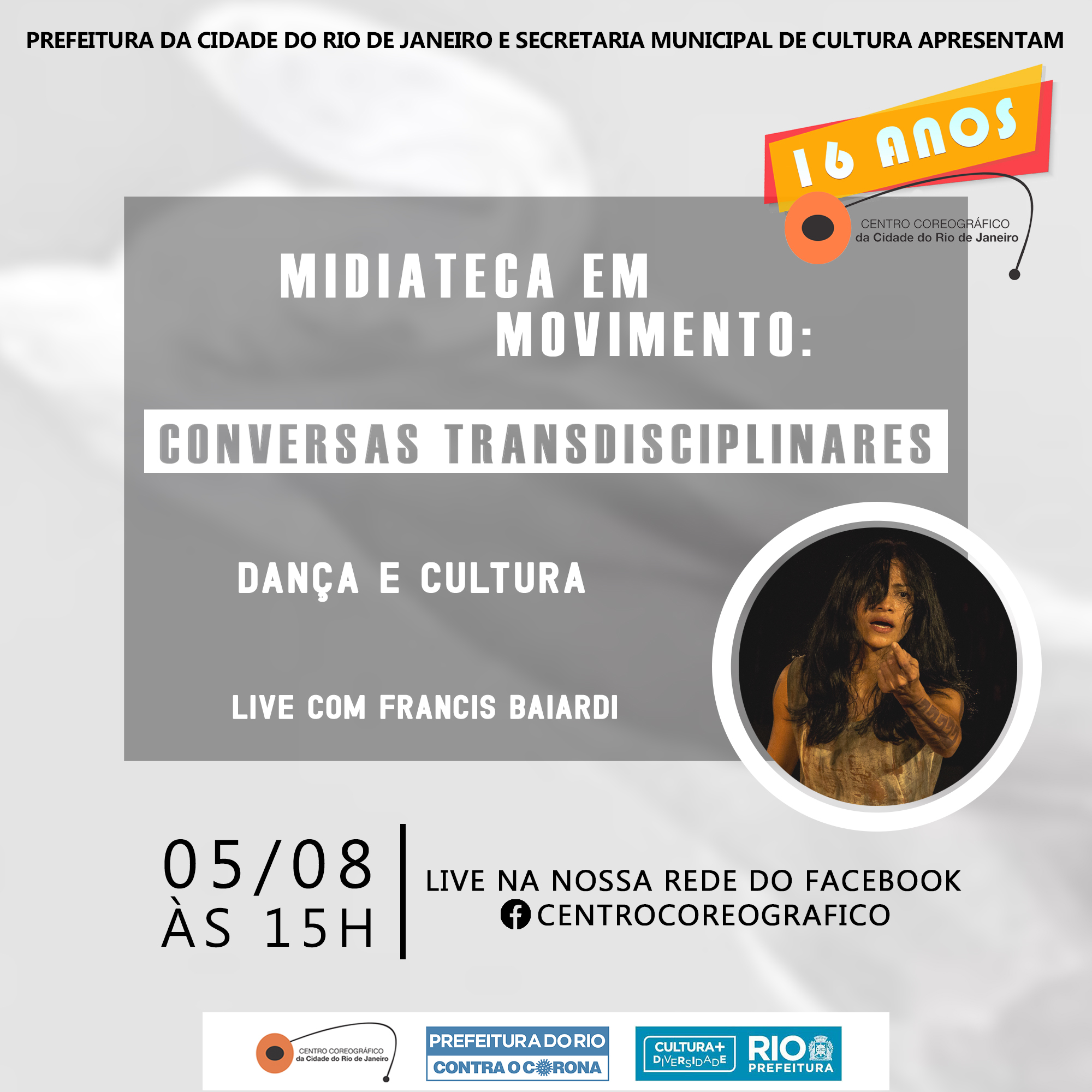 A conversa do dia 05 será sobre “Dança e Cultura” e contará com a participação de Francis Baiardi, que é amazonense, artista independente e pesquisadora. Cria e atua na dança contemporânea, em processos de criação e improvisação. Provocadora e orientadora da Contem Dança Cia. Membro do Grupo PORRA de Pesquisa Científica em Dança da Escola de Dança da Universidade Federal da Bahia. Integrante do Movimento Levante MAO e do Movimento Mobiliza CULTURA Amazonas. Participa do Fórum de Mulheres Afro-Ameríndias e Caribenhas. Participou da construção do Fórum de Dança do Estado do Amazonas. Recebeu diversos prêmios da Fundação Nacional das Artes, do Governo do Estado do Amazonas e da Fundação Municipal de Cultura, Turismo e Eventos, tais como: Artes Cênicas na Rua e Petrobras de Dança Klauss Vianna; Programa de Apoio às Artes/AM; Edital de Pautas/AM e Prêmio Conexões Culturais. Atualmente trabalha na criação da obra “EU SOU” sob a orientação da artista Dudude Herrmann. Trabalha como coordenadora e professora do projeto Apoena – Arte na Zona Norte. Participa de intercâmbios e projetos em parcerias nacionais e internacionais com Grupos, Coletivos, projetos sociais e Cias. Mestranda em Ciência da Educação pela UNIDA. Possui graduação em Licenciatura em Dança pela Universidade Federal da Bahia e especialização em Psicomotricidade pela Universidade Gama Filho.