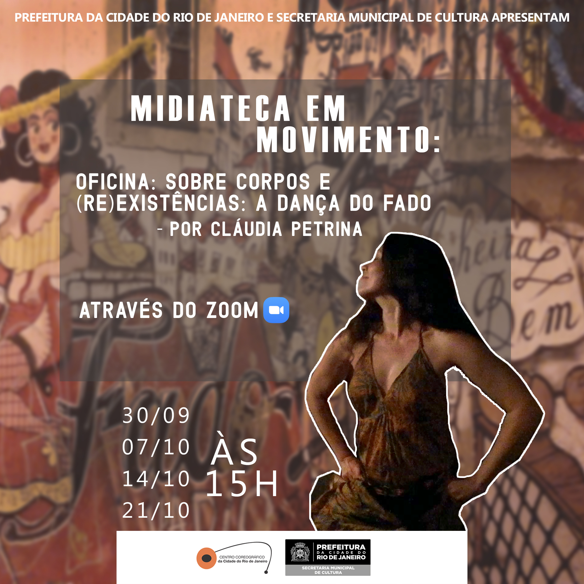 Oficina prático-teórica em quatro encontros virtuais, onde a partir do universo da Dança do Fado – dança híbrida, síntese de diversas culturas, nascida no Rio de Janeiro no período colonial – se possa experimentar e relembrar, numa perspectiva feminina e decolonial, o silenciamento imposto aos diversos corpos e suas respectivas culturas através dos tempos, e as estratégias possíveis de reativação e reinvenção de suas memórias e potências criadoras-transformadoras no presente.