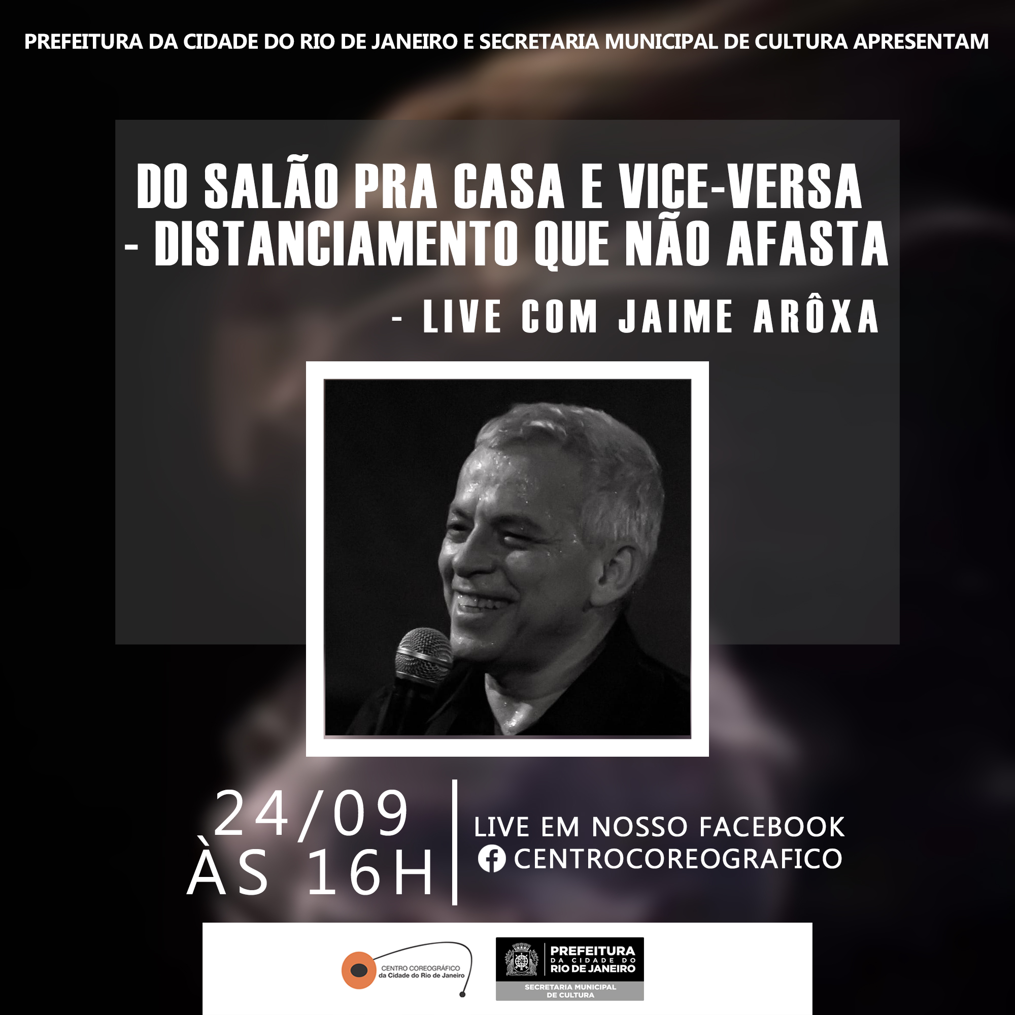 Dia 24/09, quinta-feira, às 16h, tem um bate-papo super especial com o grande Jaime Arôxa! Na live conversaremos sobre a belíssima trajetória do convidado e também sobre como a dança de salão, uma dança de contato, vem enfrentando o distanciamento social.