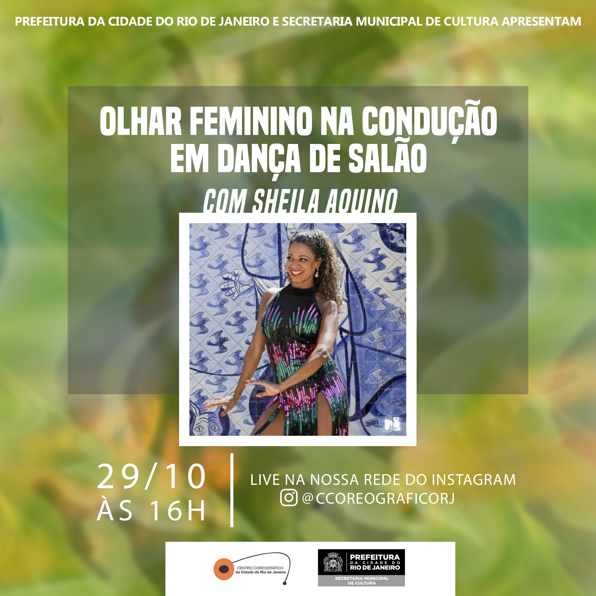 A conversa será com Sheila Aquino, que é Dançarina, Coreógrafa e Professora. Foi integrante das Cias: Carlinhos de Jesus, Marcello Moragas, Cia Aérea de Dança e Pares. Dançou e coreografou o show da cantora Alcione, o espetáculo “Todos os Musicais de Chico Buarque em 90 minutos” de Charles Möller e Claudio Botelho. Fez Clips de Emilio Santiago, Roberto Carlos, Paulinho da Viola e Elba Ramalho. Dançou entre outros com: Elza Soares, Jair Rodrigues, Simoninha, Só Pra Contrariar, Afro Reggae, Raça Negra e Simone. Participou de vários Programa de TV, das novelas Zazá, O Clone e Caminhos das Índias e do filme Navalha na Carne. Fez turnês em vários países e disseminou o samba de gafieira, samba no pé e bolero no Japão. Participou da Comissão de Frente da Mangueira e da Vila Isabel. Atualmente é parceira de Show com Marcus Lobo e Marcelo Chocolate e coordena as atividades de samba de gafieira na Doble Escola de Dança/ BH.