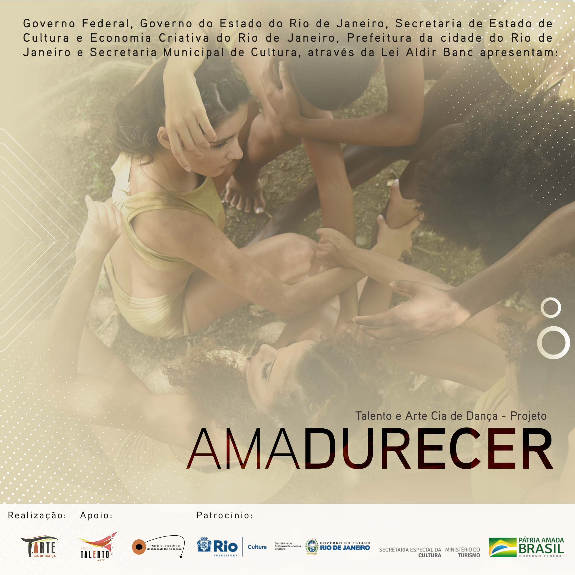 Dando prosseguimento ao projeto, apresentamos esta semana o projeto TALENTO E ARTE CIA DE DANÇA – PROJETO AMADURECER. Idealizado pela diretora Marluce Medeiros, professora, bailarina e coreógrafa que acompanha o desenvolvimento de jovens bailarinas do subúrbio carioca, onde observa o quanto a dança impacta no histórico de vida dessas jovens. No início de 2020 tomamos a decisão de iniciar esse projeto e falar sobre o processo de amadurecimento da mulher. Essa escolha permeia também o próprio espaço de dança que completa 16 anos desenvolvendo arte e cultura no subúrbio carioca, e a coreógrafa que completou 50 anos de idade, 35 dedicados à dança onde o processo de amadurecimento é necessário para que seu trabalho se perpetue em outros corpos.