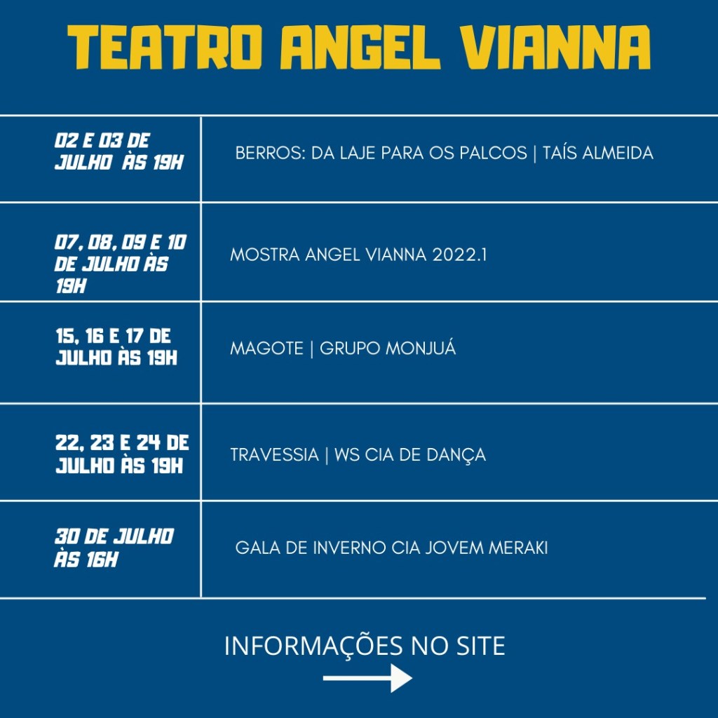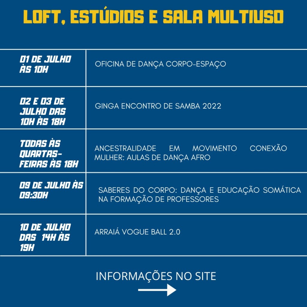 Informações: As apresentações serão selecionadas entre LOFT e PALCO numa programação variada em 4 dias de mostra artística, de 07 a 10/07/2022.