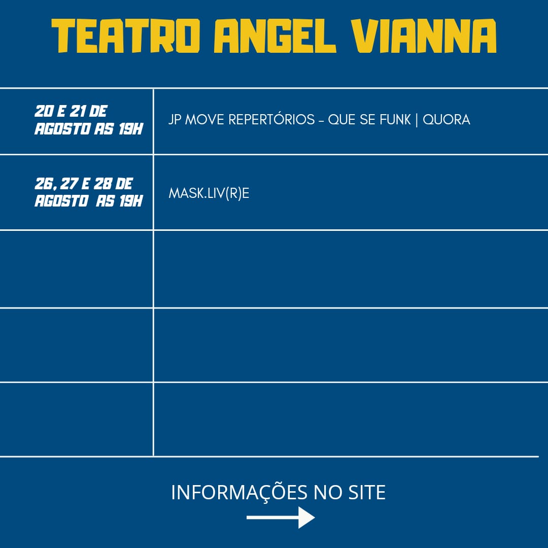 06/08 – Chegada no Teatro: 16h | Ensaio: 17h às 18h | Apresentação: 19h