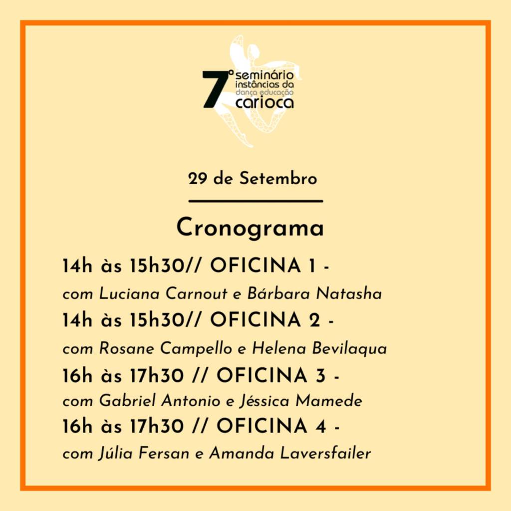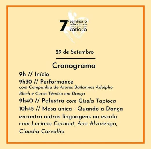 O Seminário Instâncias da Dança-Educação Carioca traz anualmente desde 2016 a proposta de fomentar as discussões sobre este campo no Rio de Janeiro. A partir de temas geradores, relatos de experiências, perspectivas e propostas de educadores em dança em diferentes sistemas de ensino em uma parceria do Curso Técnico em Dança da Rede FAETEC e da Companhia de Atores Bailarinos Adolpho Bloch com o Centro Coreográfico da Cidade do Rio de Janeiro.