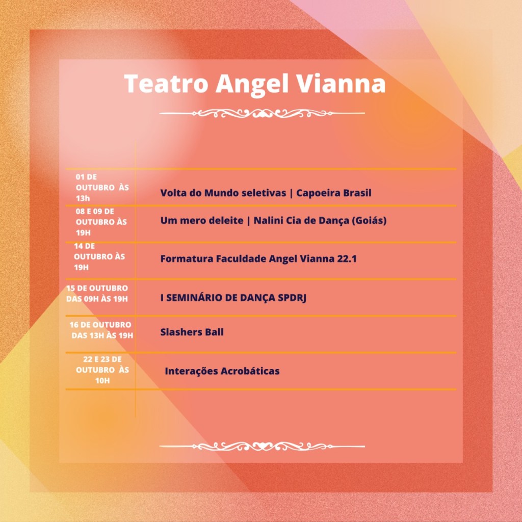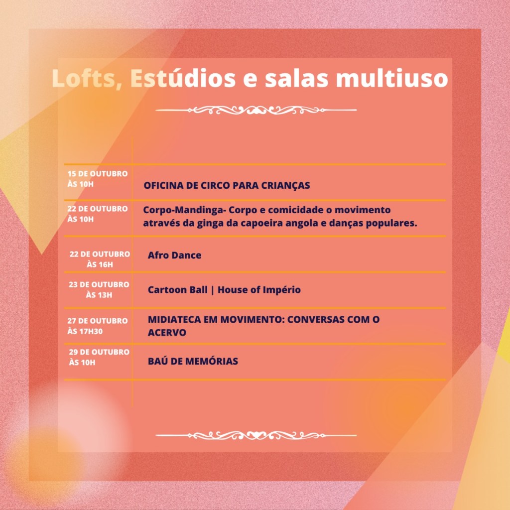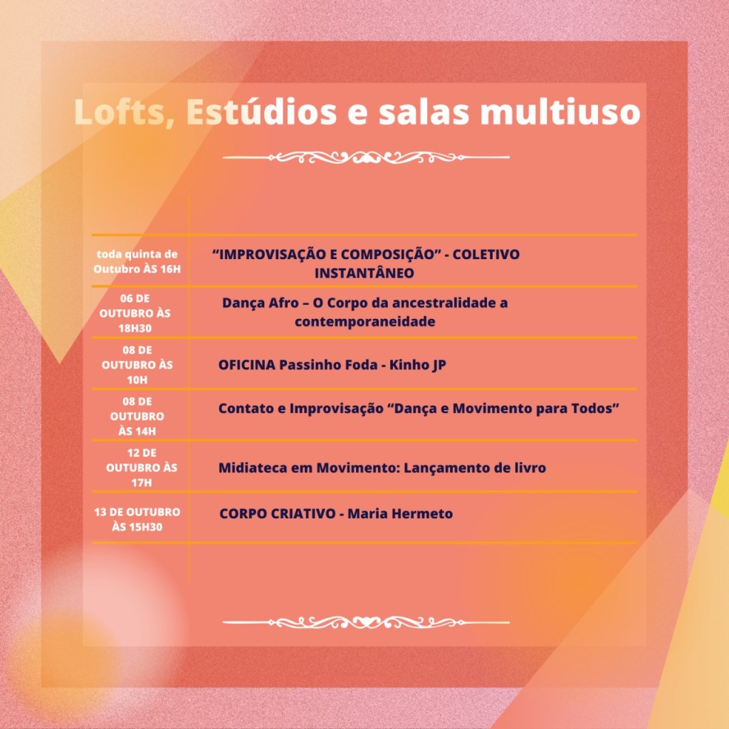 Chegamos em Outubro com uma extensa programação de oficinas, espetáculos e encontros.