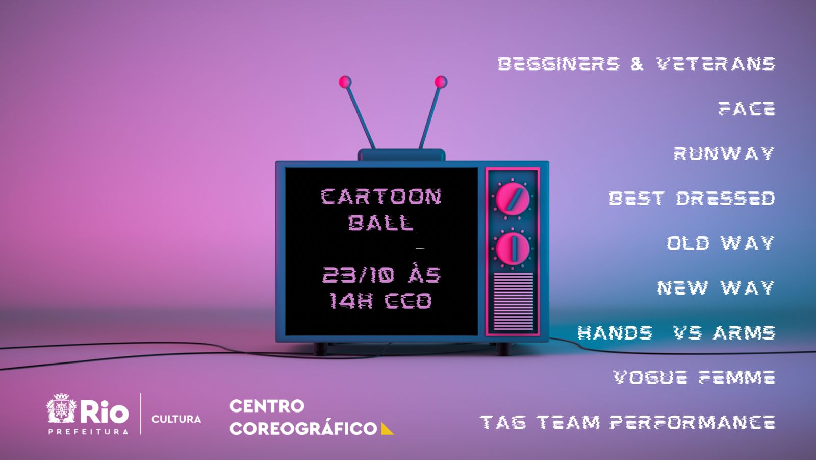 Cartoon Ball é uma competição com categorias que exploram performance e também estética para todas as corpas presentes dentro da cultura Ballroom afim de celebrar a vivência de cada um.