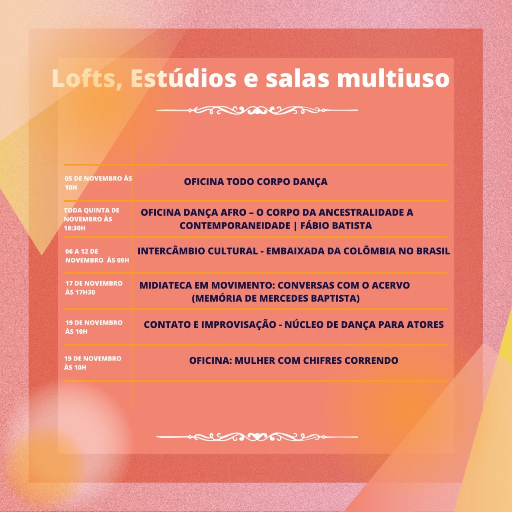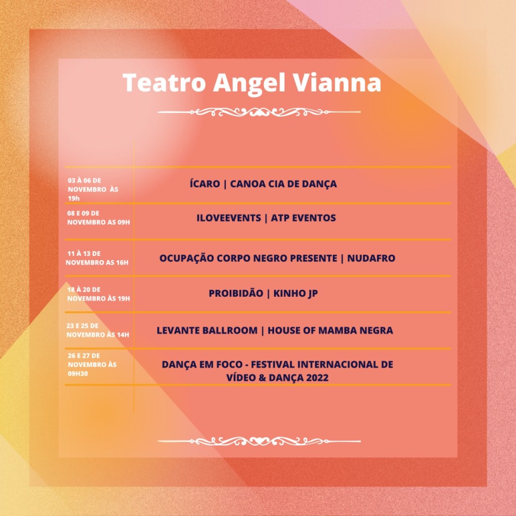 No mês da consciência negra trazemos uma rica programação ao nosso público através de espetáculos, eventos, oficinas e atividades de acervo e memória pautados pelas danças afro diaspóricas e seus agentes.