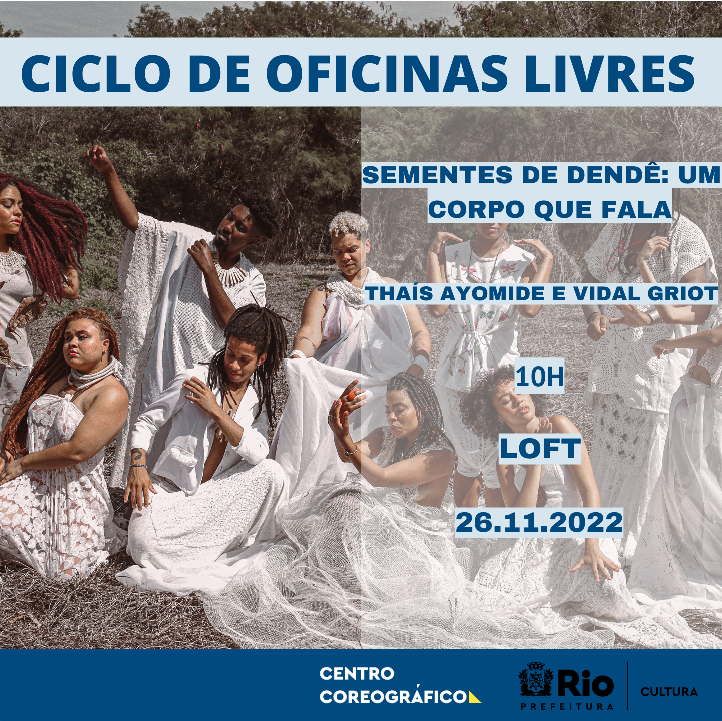 ao vivo, que busca através de estímulos sensoriais ampliar a percepção corpórea por meio de fotografias, poesias e do contato com elementos como o dendê e a água do mar. Tendo como público focal mulheres e homens, trans e cis negros, pessoas LGBTQIA+, jovens e adultos a partir de 16 anos de idade e moradores das favelas e periferias do Rio de Janeiro.