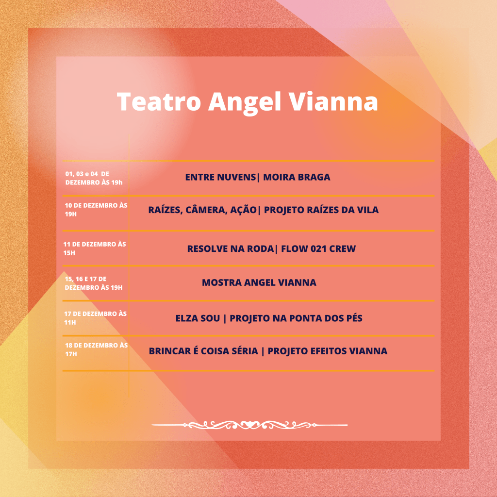 Data: dias 15, 16 e 17 de dezembro às 19h no Teatro Angel Vianna