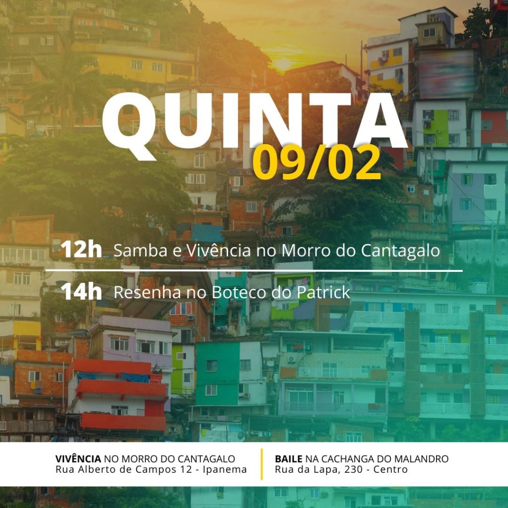 Uma tarde imersiva na favela do Cantagalo com aulas de samba e apresentações de artistas locais.