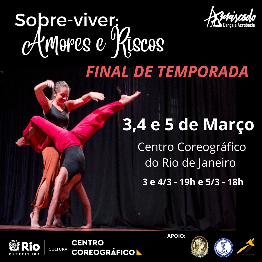 Depois de tempos tão difíceis de isolamento voltamos à cena presencial com o espetáculo Sobre-Viver: Amores e Riscos. Foi criado pelo projeto de pesquisa Arriscado: um diálogo entre dança e acrobacia, do Departamento de Arte Corporal da UFRJ, que aborda as relações afetivas que se tornaram ainda mais encaixadas ou desencaixadas durante a Pandemia de COVID-19. Com base nos inúmeros desafios vividos nos últimos dois anos, a nova equipe apresenta um espetáculo que fala sobre a vida, encontros, afastamentos, reencontros, términos e recomeços… Falamos Sobre-Viver!