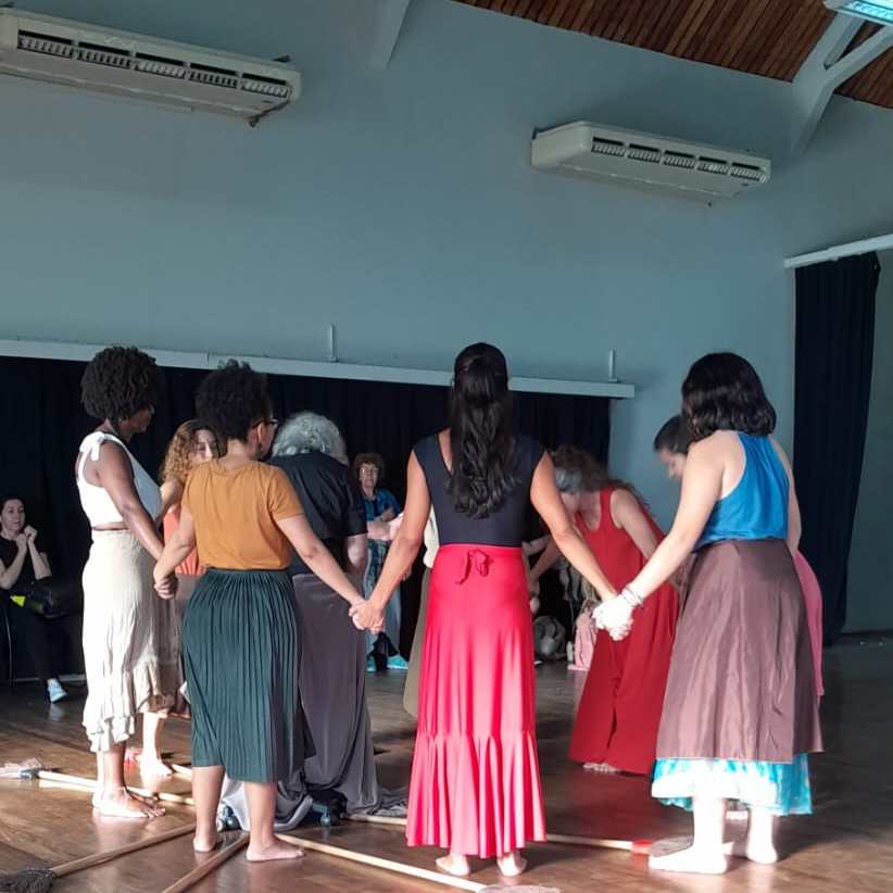 Nossa criação coreográfica coletiva e em processo, pretende compartilhar com o público um pouco das vivências, reflexões e movimentos surgidos ao longo das oficinas Rodas Femininas que aconteceram de março a junho na Midiateca do Cco. Neste caminho conversamos e nos questionamos sobre as múltiplas faces e as diversas fases do Feminino, seus desafios e urgências atuais e ancestrais. Que toda a força, suavidade e beleza evocadas neste percurso sigam impulsionando as mu-danças nossas de cada dia/noite. Gira! Roda!…