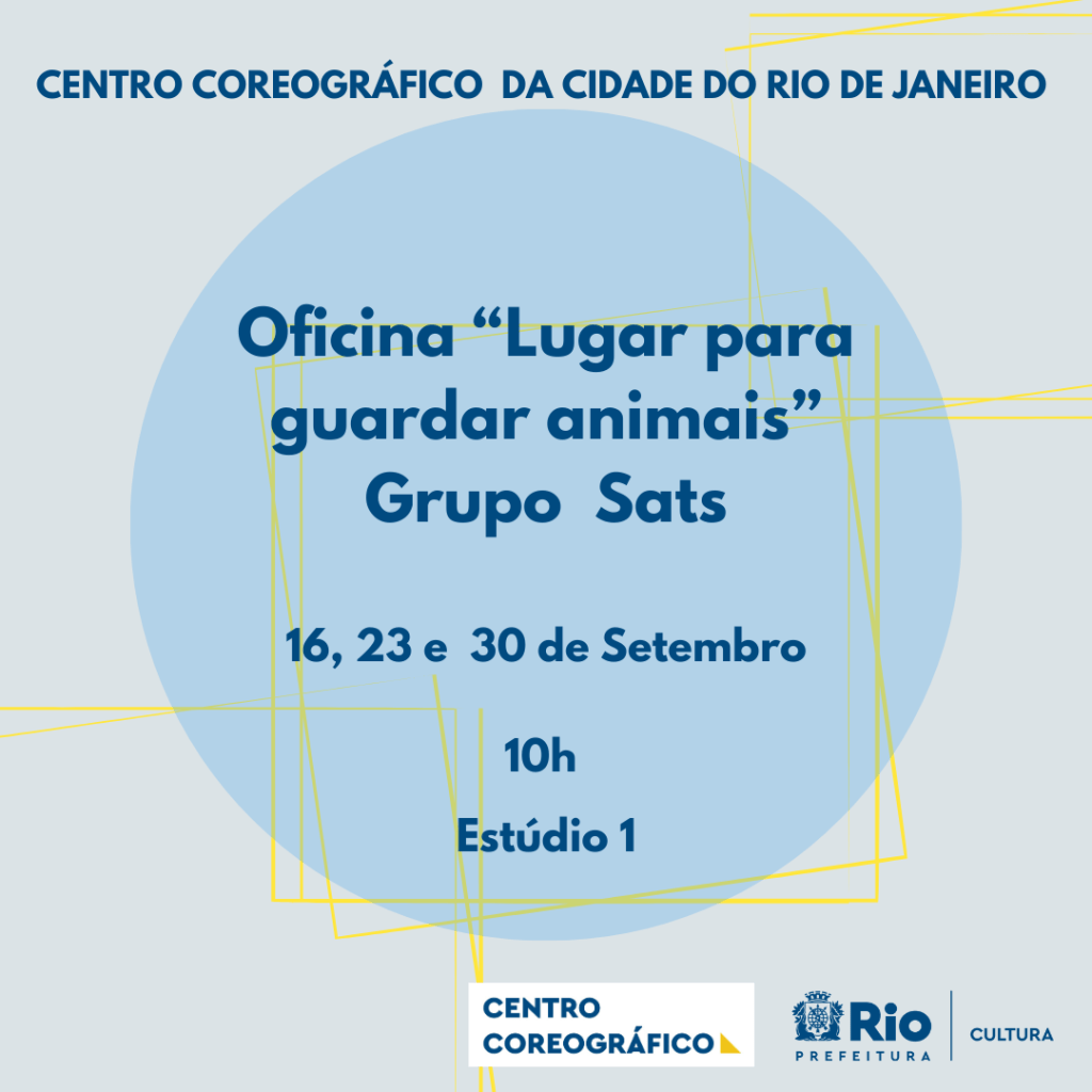A partir do dia 16 de Setembro, aos sábados, temos o Grupo Sats. A oficina compartilha os laboratórios e metodologia do espetáculo “Lugar para guardar animais”. “Durante a prática, nosso interesse está, primeiramente, em desarticular formas e estruturas convencionais restritivas que