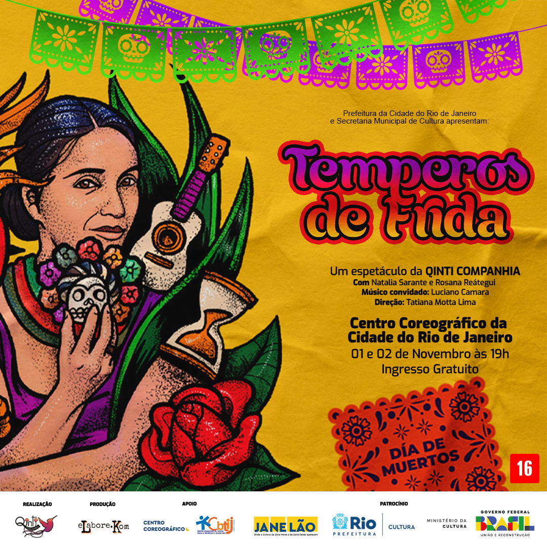 O espetáculo apresenta uma dramaturgia costurada por três personagens, dona do bar, Frida Kahlo e a Morte Catrina interpretadas pela atriz peruana Rosana Reátegui, com os trechos marcantes da vida da grande pintora, suas frases emblemáticas e provocadoras, mescladas com músicas mexicanas, como La Llorona, La Bruja, Cucurrucucu Paloma, todas cantadas ao vivo por Natalia Sarante e acompanhadas pelo violão de Luciano Camara. Em “Temperos de Frida”, as paixões estão reunidas nos sabores, no canto e na palavra, como elementos de uma potente bruxaria que é compartilhada com o público. Seja nos boleros que Frida tanto gostava de cantar, nas histórias de grandes e arrebatadores amores ou na entrega profunda para defender sua vida, ela é aquela que viveu significativa e intensamente.