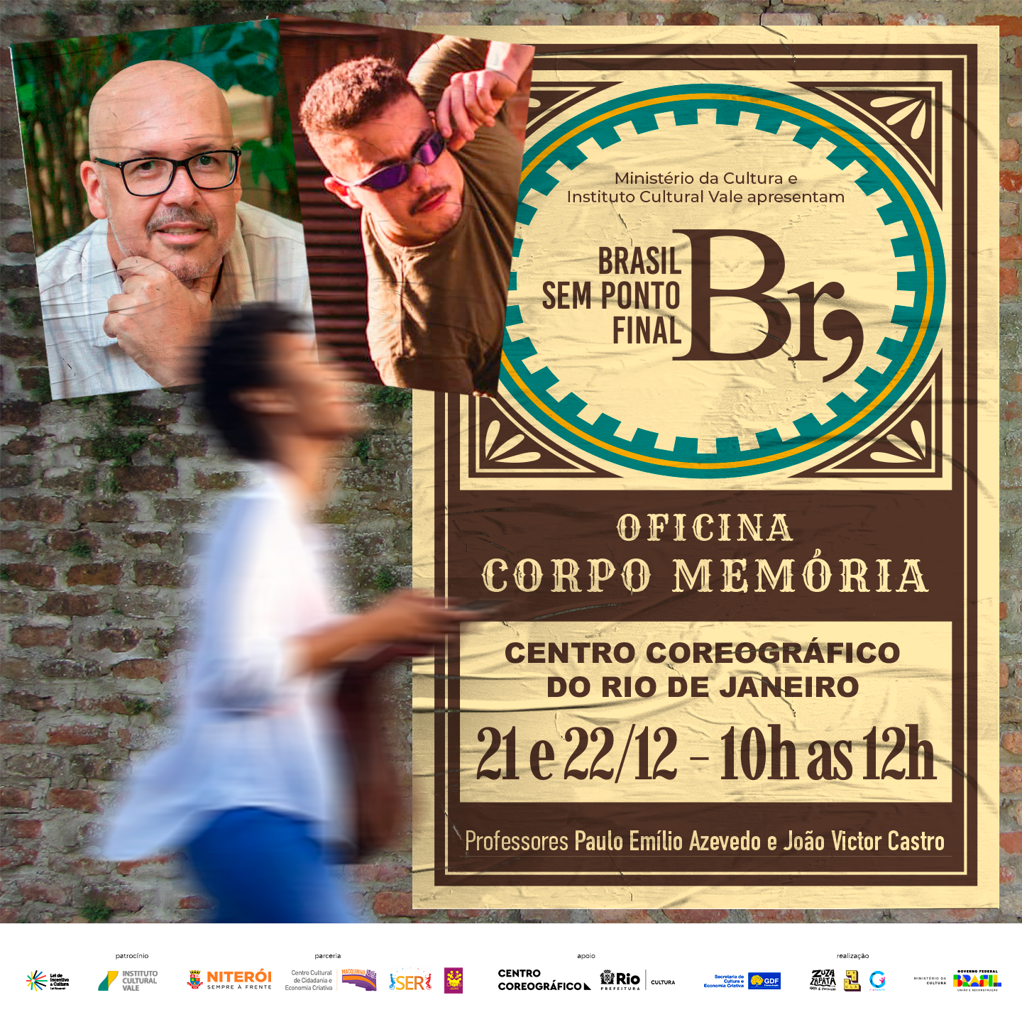 “Ministério da Cultura e Instituto Cultural Vale Apresentam”: Brasil sem Ponto Final”, interpretado pela Cia Gente, escrito e dirigido pelo dramaturgo e antropólogo Paulo Emílio Azevedo e coordenado pela Zuza Zapata Arte e Produção.