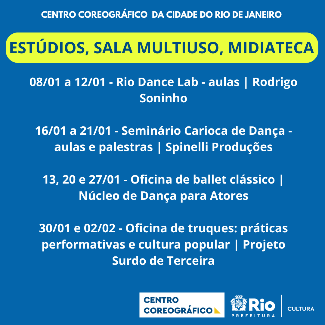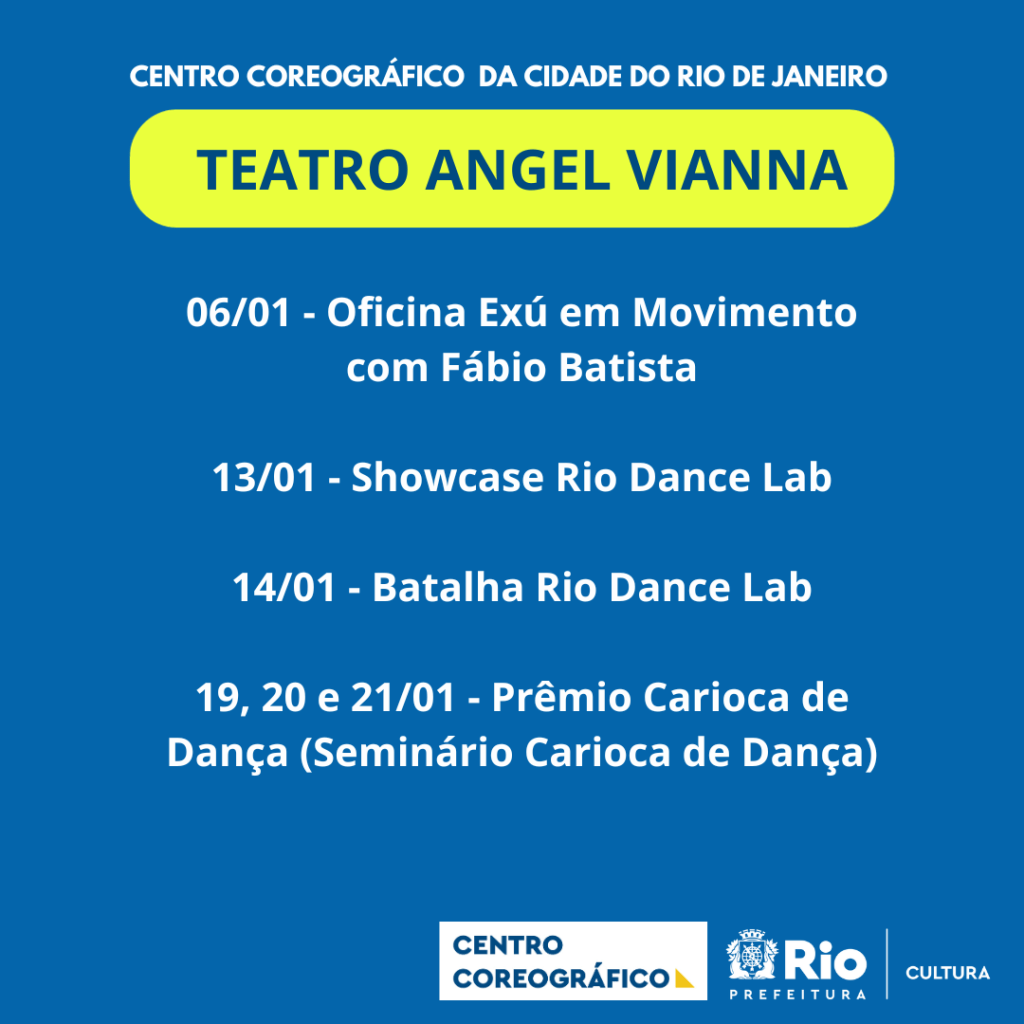 Nossa programação de janeiro saiu fresquinha! São oficinas, showcase, batalha, mostras e eventos de dança neste mês! Ingressos à venda na plataforma Rio Cultura!