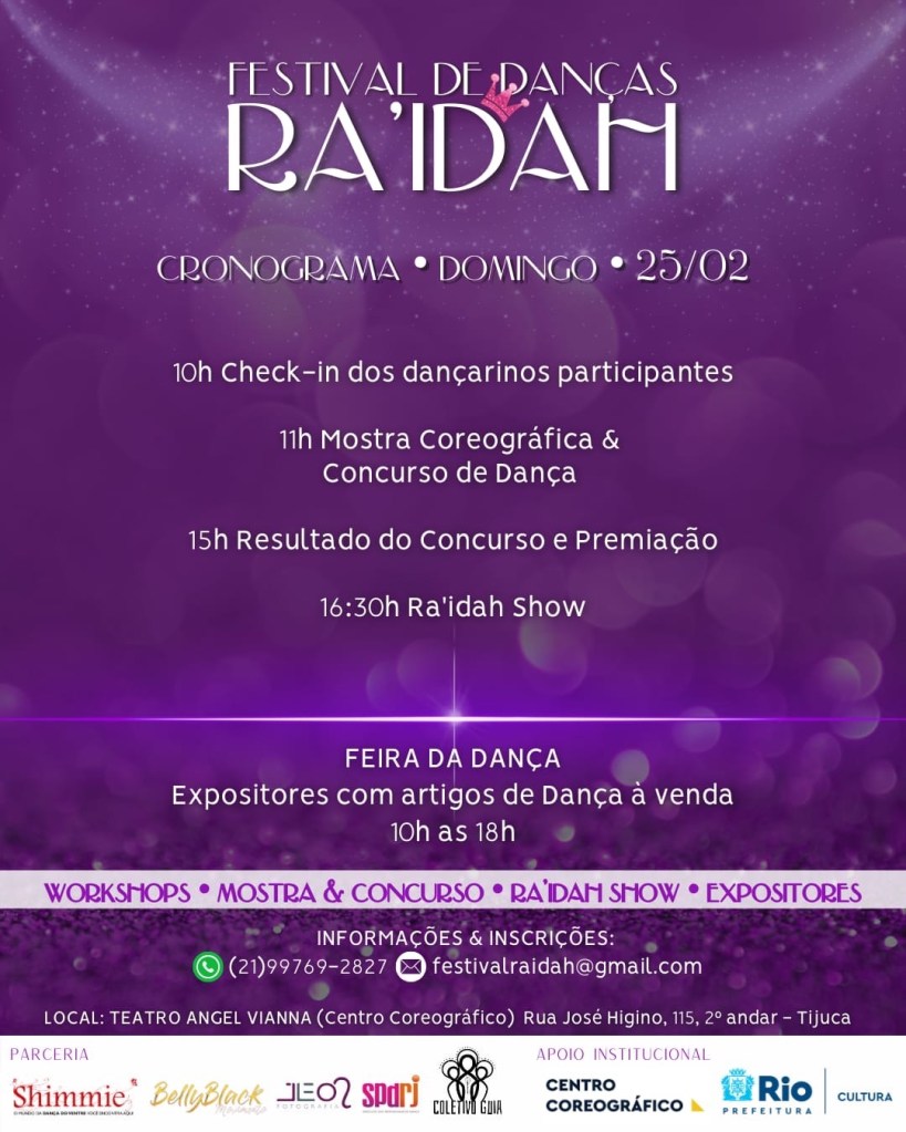Informações: Whatsapp (21)997692827 | E-mail festivalraidah@gmail.com