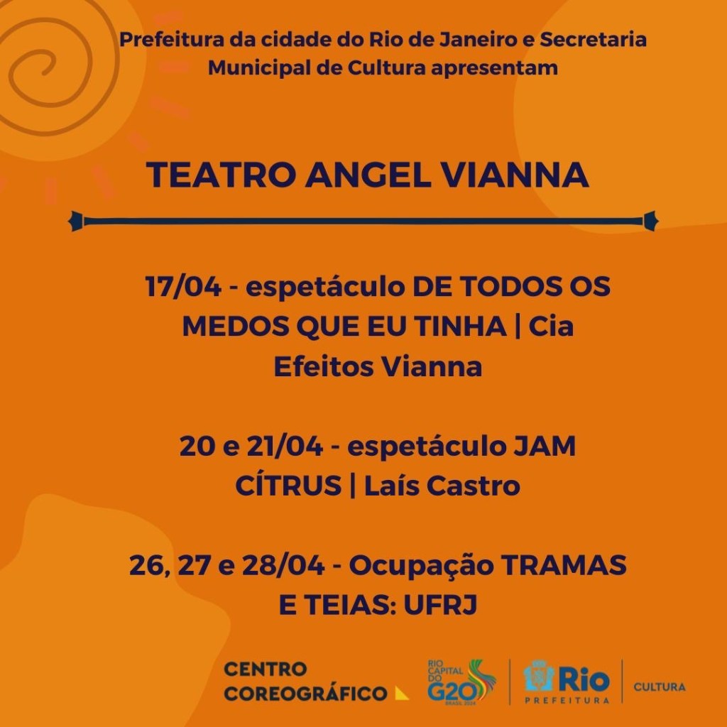 Abril, mês do Dia Internacional da Dança, chega trazendo espetáculos e oficinas vencedores dos editais Pró-carioca Diversidade e Viva o Talento além da rotina de residências artísticas e apoios institucionais. A programação detalhada está disponível no site do Centro Coreográfico e os ingressos na plataforma Rio Cultura. Em breve as inscrições para as oficinas serão liberadas!