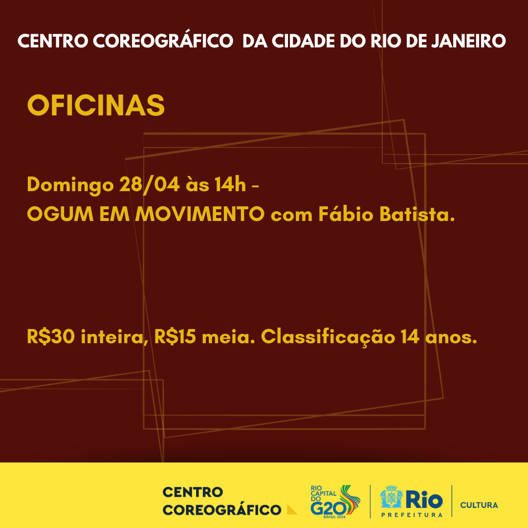 A oficina visa introduzir os movimentos do Orixá Ogum, através do método de aprendizagem e troca do Ponto de Cultura Escola Carioca de Danças Negras. No ano em que completa 10 anos de trabalho e pesquisa, a ESCADAN se consolidou no cenário brasileiro uma importante entidade de desenvolvimento de técnicas das danças negras.