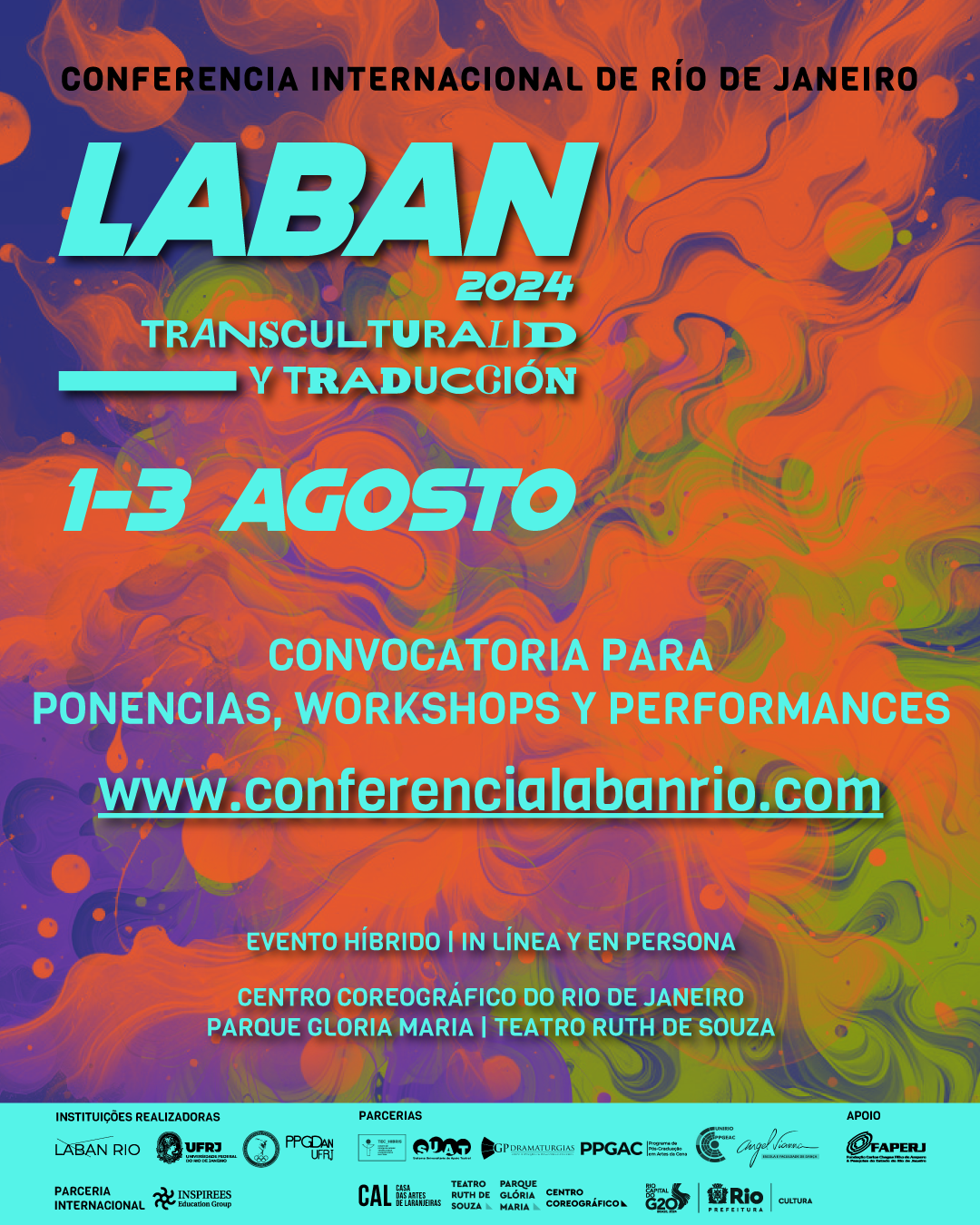 Resumo: A Conferência Internacional do Rio de Janeiro LABAN 2024: Transculturalidade e Tradução visa reconsiderar o que é articulado como trans, no sentido de atravessar linhas, transcender fronteiras, traduzir diferenças e transitar entre idiomas e culturas. Nesse sentido, transculturalidade e tradução estabelecem compartilhamentos, mas também intervenções, subversões, contribuições e trocas, que ocorrem em contextos políticos, geográficos e ideológicos diversos.