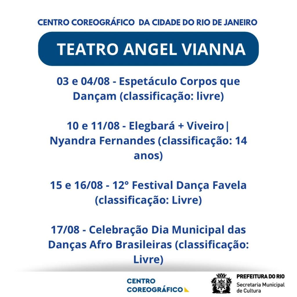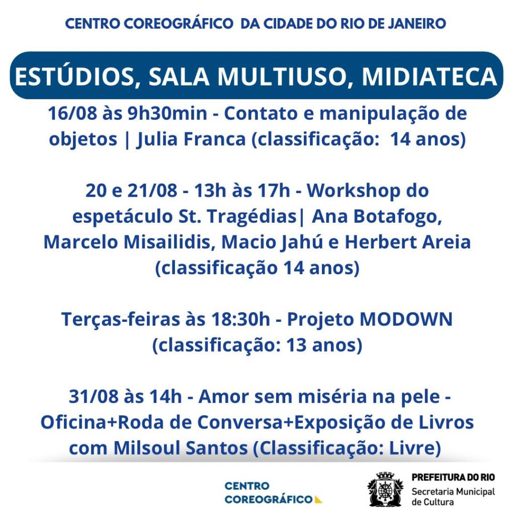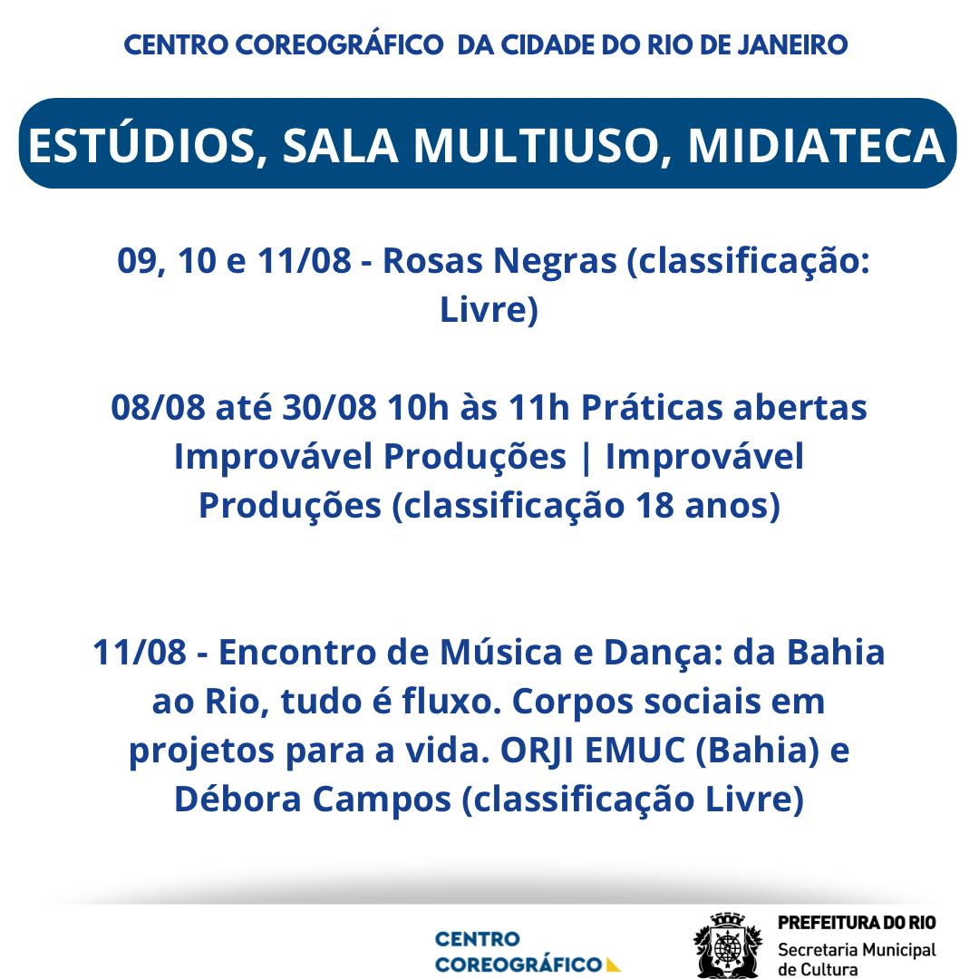 Data: quintas, sextas e sábados, dias 08, 09, 10, 15, 16, 17, 22, 23, 24, 29, e 30 de agosto