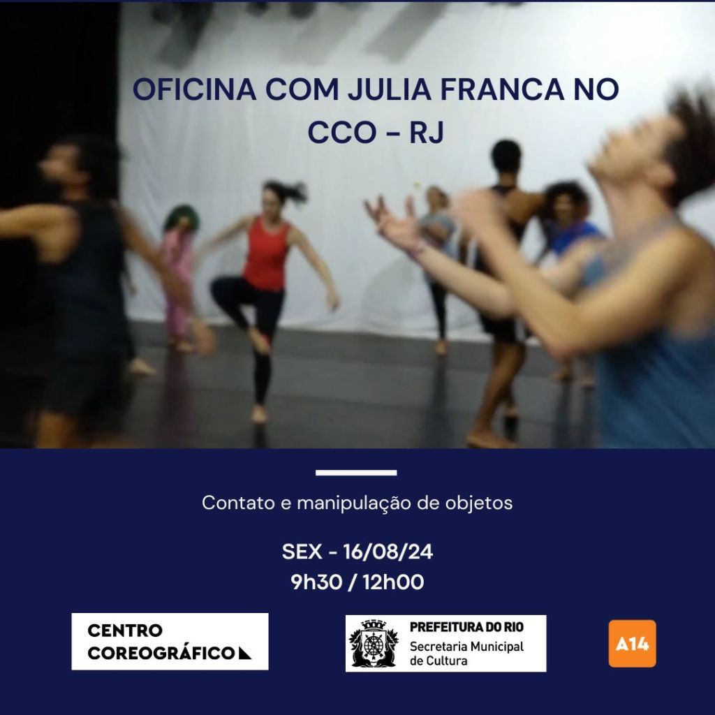 Histórico da cia: Julia Franca é CMA – Certified Movement Analyst, artista-pesquisadora e docente do Departamento de Arte Corporal – DAC/EEFD da UFRJ. Foi docente da Escola e Faculdade Angel Vianna, atuando no Curso Técnico em Bailarino Contemporâneo com a disciplina TEMAOB – Técnica de Manipulação de Objetos e na Pós-graduação em Sistema Laban/Bartenieff. É doutora em Artes – PPGArtes/UERJ, mestre em Estudos Contemporâneo das Artes – PPGAC /UFF, graduada pela Faculdade Angel Vianna, e Técnica em Artes Circenses pela Escola Nacional de Circo – FUNARTE. Atualmente, desenvolve sua pesquisa sobre como a dança e as análises de movimento podem oferecer lentes que possam ampliar os olhares sobre as artes circenses.
