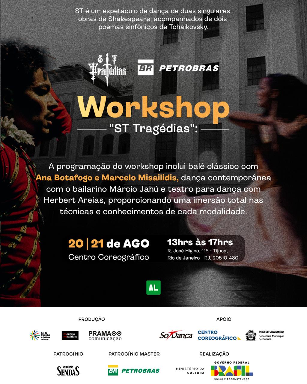 Resumo: Após o sucesso da reestreia de “ST Tragédias” no Rio de Janeiro, os bailarinos Ana Botafogo e Marcelo Misailidis preparam um workshop especial que será realizado no Centro Coreográfico da Tijuca nos dias 20 e 21 de agosto. Este evento promete oferecer uma experiência enriquecedora e inesquecível para os participantes, com aulas ministradas por grandes nomes da dança brasileira.