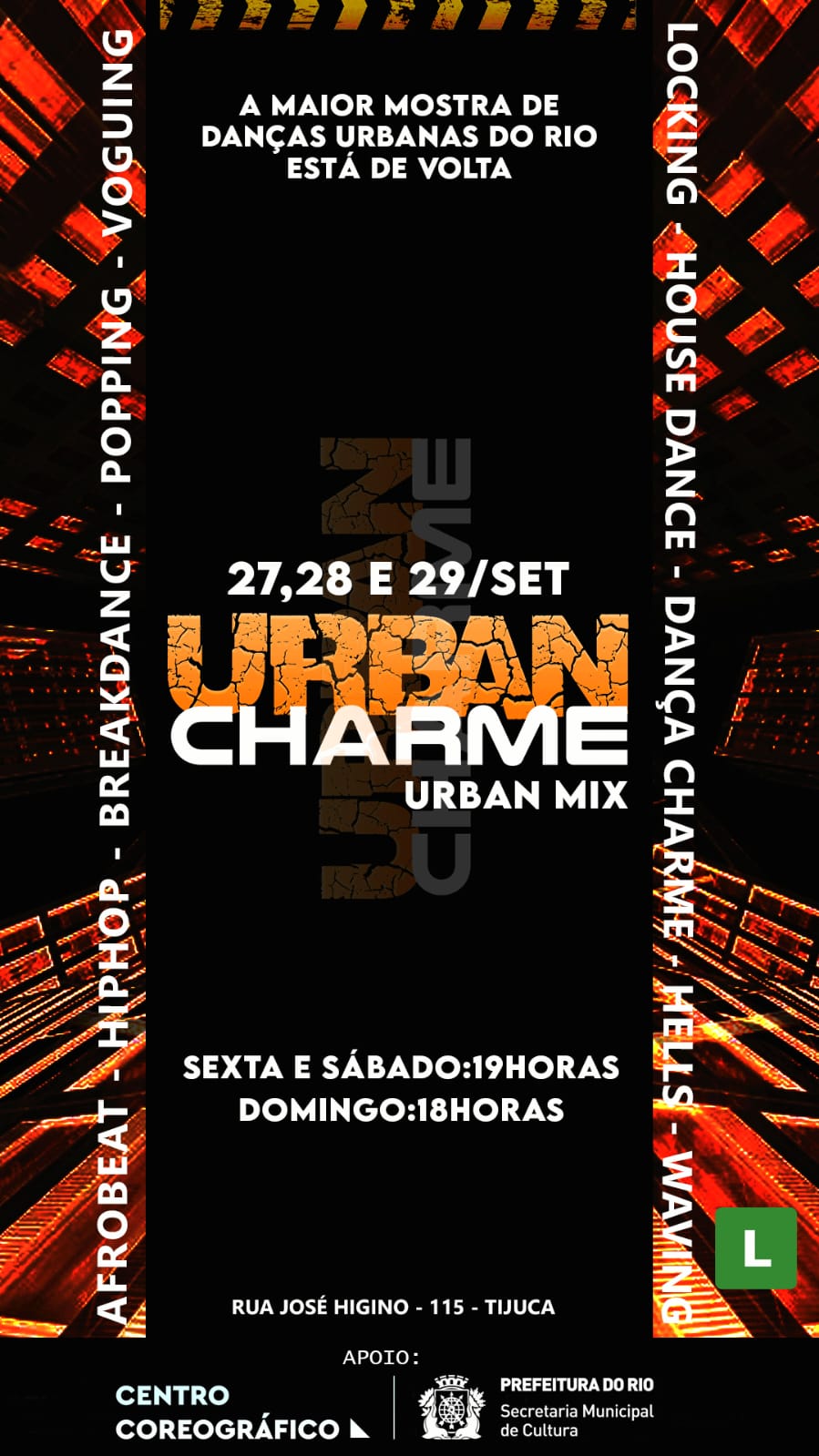 Informações: Mostra de Dança Urban Charme é um sucesso há quase 10 anos e reúne a maior parte da cena carioca de dançarinos e grupos do Rio de Janeiro. Entre a Dança Charme, o HipHop e tantas outras street dances.