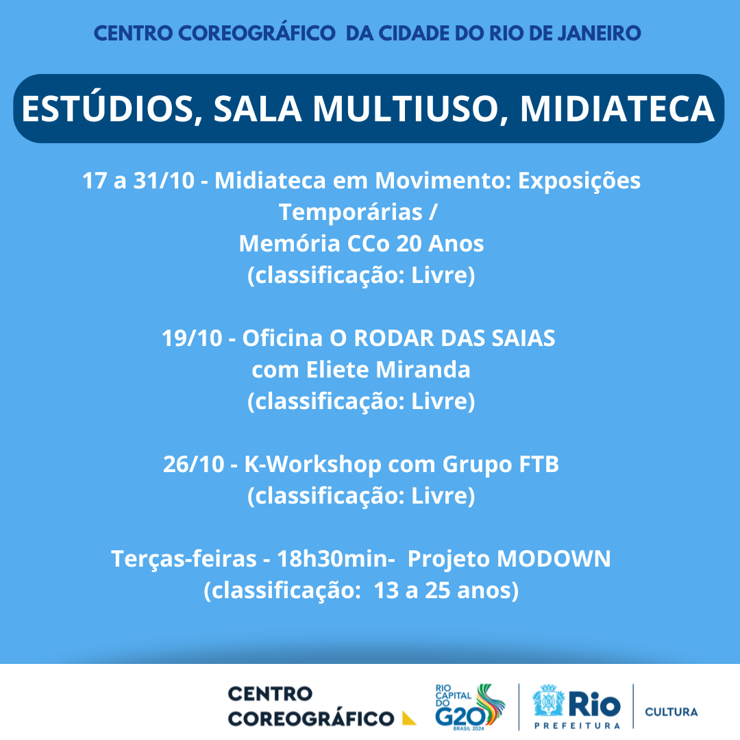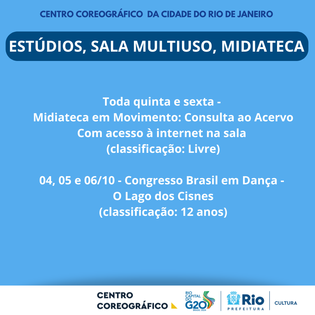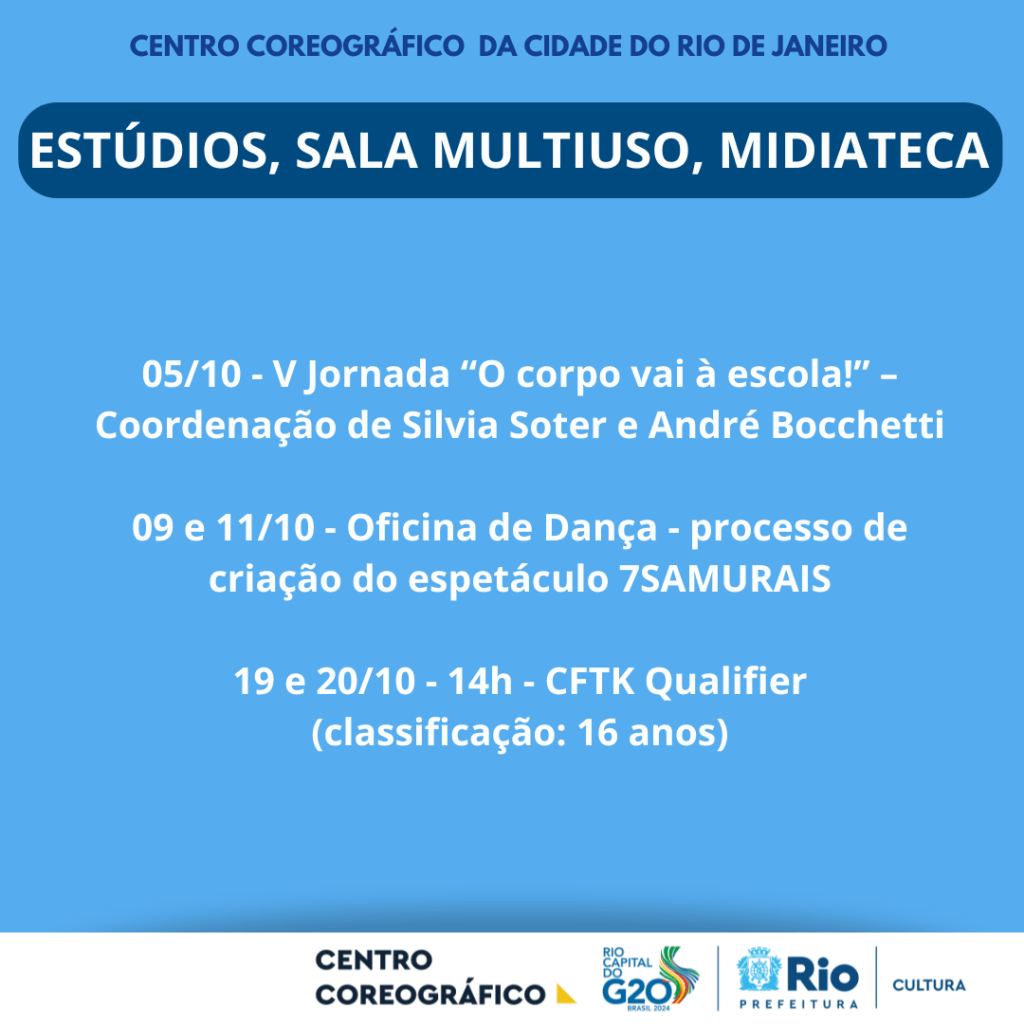 A programação de outubro de 2024 do Centro Coreográfico da Cidade do Rio de Janeiro oferece uma agenda diversa voltada para a dança e suas múltiplas expressões. O público pode desfrutar de espetáculos inovadores, residências artísticas e oficinas que promovem o intercâmbio cultural. O espaço se consolida como um polo de criação e pesquisa em dança, proporcionando acesso a novas linguagens e fomentando a experimentação artística em todas as suas formas, fortalecendo o cenário da dança na cidade.
