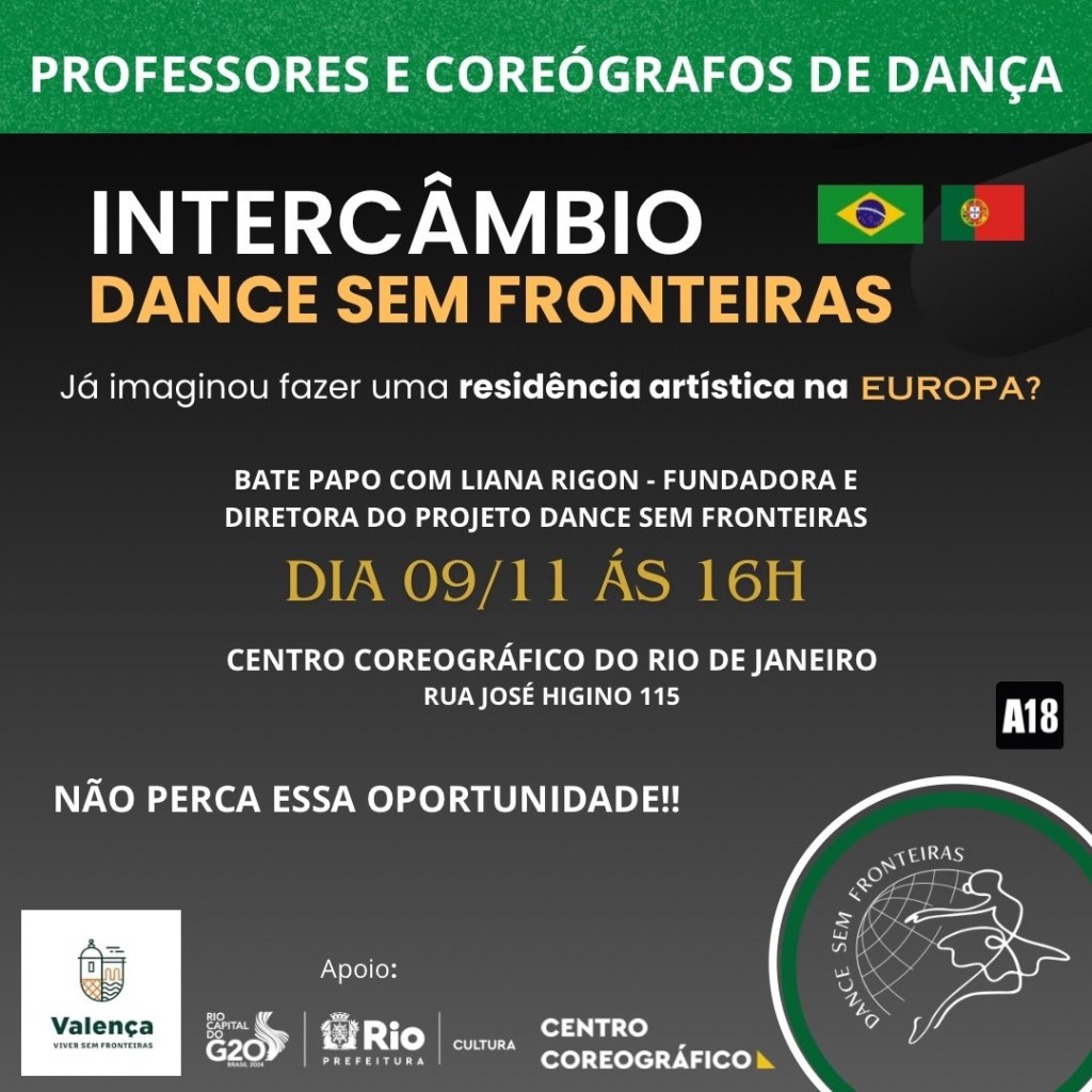 Resumo: Bate papo com Liana Rigon, fundadora e diretora do Intercâmbio Dance Sem Fronteiras. O objetivo da conversa é promover uma troca cultural (Brasil x Portugal) potente entre os arte-educadores presentes apresentando o projeto, bem como, sanar dúvidas, responder as perguntas e dar a oportunidade de os mesmos se candidatarem à residência artística.
