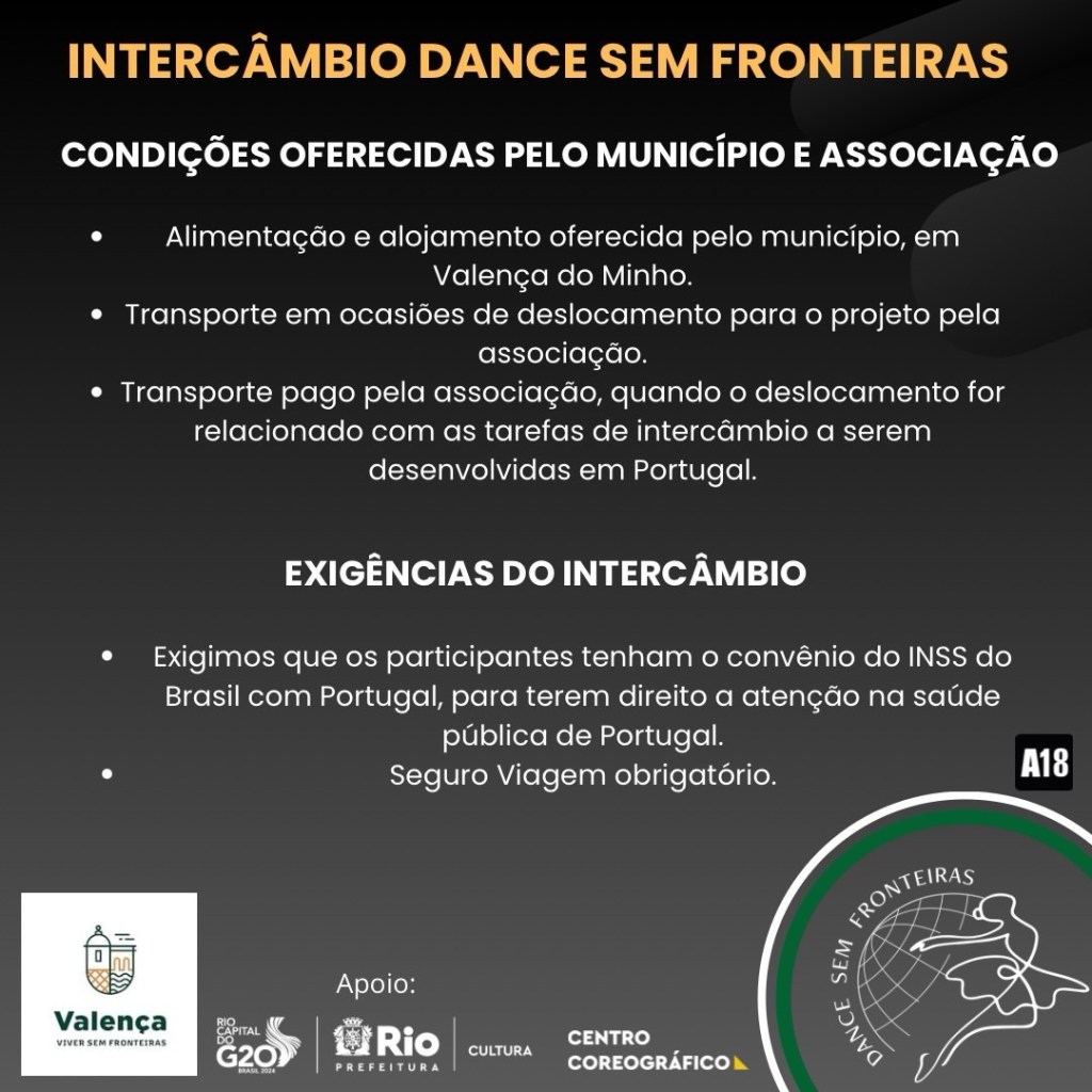 Esse projeto recebe o apoio da Câmara Municipal de Valença, e os profissionais de dança agora residem no município, e durante o projeto realizam sua formação conosco, em nossa metodologia, em nossas escolas, realizam e oferecem formação em escolas associadas, além de realizar e participar no projeto CORPO EM MOVIMENTO, que foi introduzido nas escolas da rede escolar municipal, dos infantários até o quinto ano. Também criamos e executamos com o apoio do município o ARTE DANCE VALENÇA, que já foi realizado em três anos consecutivos, um evento que dinamiza a arte da dança, na fortaleza e no palco, a convivência dos bailarinos e escolas, com atividades lúdicas, artísticas e de formação que reúne cerca de 300 bailarinos, portugueses e espanhois, sempre no último fim de julho. Sendo o evento de verão que fecha o calendário escolar das escolas de dança participantes e associadas a nós.