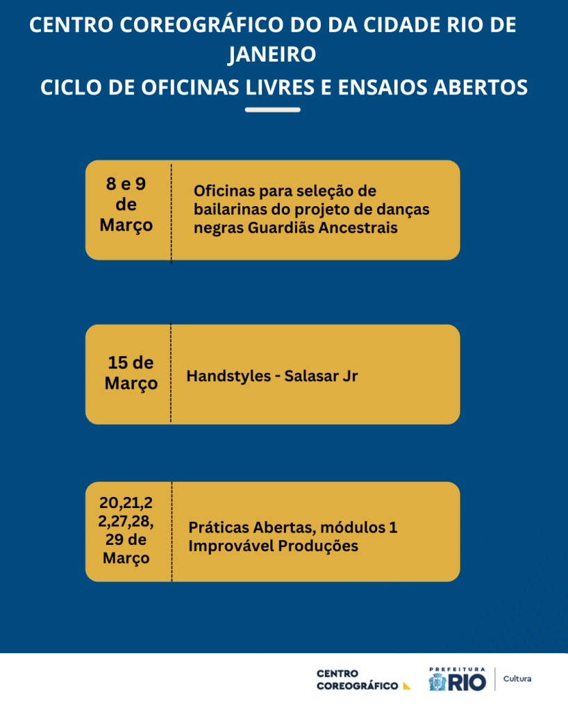 As bailarinas selecionadas participarão de processo de pesquisa sobre danças negras numa Residência Artística realizada no Centro Coreográfico da Cidade do Rio de Janeiro entre março e junho.