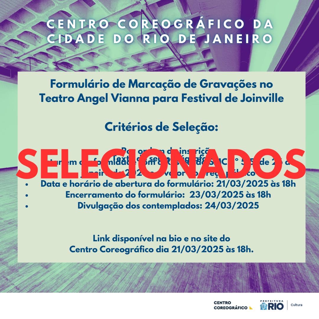 Parabéns aos selecionados e suplentes! Aguardem o contato da produção do Centro Coreográfico para marcar as gravações de acordo com os horários disponíveis e a ordem de inscrição! 🎥✨
