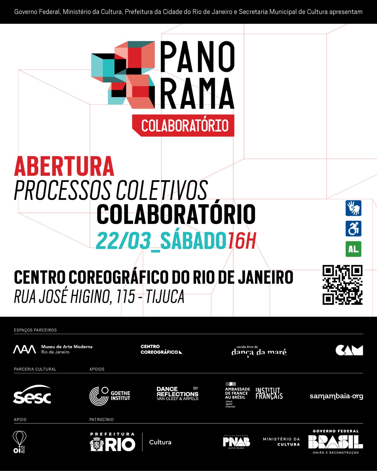 Parceria: O Panorama 2025 – CoLABoratório é um projeto contemplado pelo edital Pró-Carioca, programa de fomento à cultura carioca, da Prefeitura da Cidade do Rio de Janeiro, através da Secretaria Municipal de Cultura, e tem parceria do Sesc RJ, Goethe Institut, Institut Français e Samambaia.org.