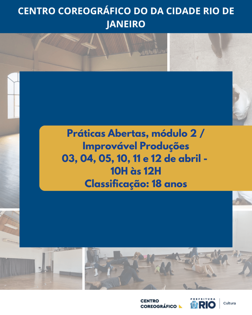 Resumo: Bora praticar?! Nos meses de março e abril, a Improvável Produções abrirá os dois primeiros módulos de práticas abertas para convidades. Serão 6 encontros por módulo e 10 bolsas de 300 reais para cada módulo. Para se inscrever, basta enviar uma mini bio de até 1.000 caracteres + carta de intenção para o e-mail praticasabertas@gmail.com até o dia 28 de fevereiro, indicando para qual dos dois módulos é a inscrição.