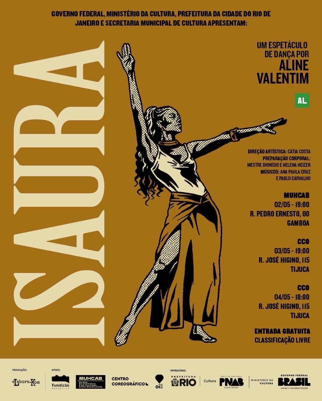 Isaura é um espetáculo de dança que faz homenagem e conta a história da bailarina, professora e coreógrafa Isaura de Assis, uma das grandes referências das Danças Negras no Rio de Janeiro, idealizada pela também bailarina e coreógrafa, Aline Valentim. o projeto é uma produção da eLabore.Kom e tem como objetivo principal reverenciar a trajetória da artista que pertence a uma geração que marcou história, auxiliando na constituição e fundação do campo estético, político e artístico das danças negras cariocas. Pensando no enfrentamento ao apagamento de histórias de mulheres negras, o espetáculo de dança Isaura, realiza temporada no Rio de Janeiro, no mês de maio, e conta com a preparação corporal de Mestre Manoel Dionísio, direção artística de Cátia Costa e musicistas convidados. Isaura leva ao público a história e o legado deixado pela bailarina, que é uma das pioneiras da dança negra na capital fluminense, além de reforçar a luta contra o apagamento de seu legado. A ideia nasceu há alguns anos, depois de um encontro de uma ex-aluna de Dona Isaura e Aline e surgiu o desejo de levar à cena esta história de forma mais profunda e substancial. Segundo Aline, o espetáculo é um desejo de contar a história dessa linhagem, que engloba não só Isaura de Assis, mas também Dona Mercedes Baptista, Mestre Dionísio e tantos outros que fizeram e fazem história nas artes e na dança, e ela lembra ainda que a visibilidade dessas pessoas tem voltado aos poucos.