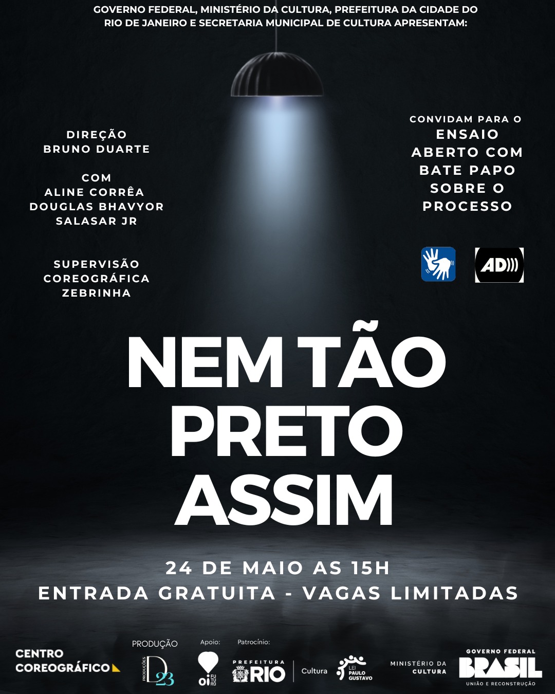 Link para retirada de ingresso: https://www.sympla.com.br/evento/segundo-ensaio-aberto-nem-tao-preto-assim/2967797