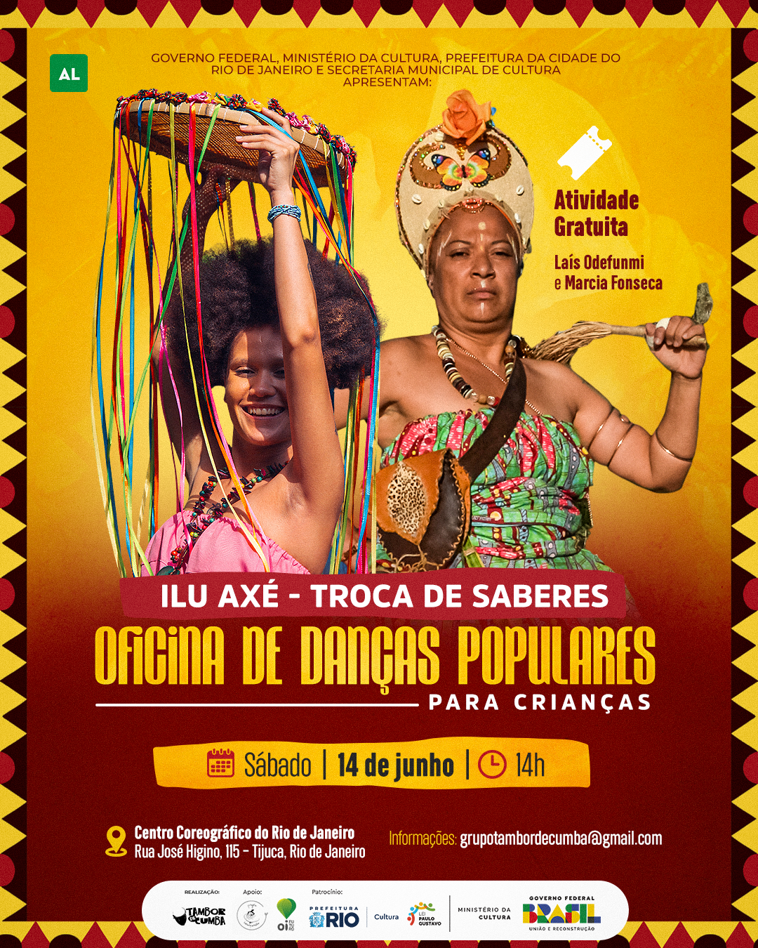 No trabalho a arte educadora Laís Odefunmi do Tambor de Cumba convida as crianças para uma imersão do Bumba Meu Boi e recebe a Marcia Fonseca do Coletivo Griot para uma vivência com o jongo e a ciranda.