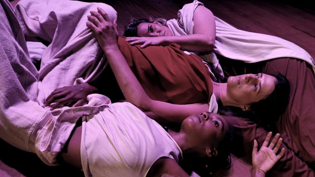 Para além de uma contrapartida social, a montagem de “Hereditária” tem a ampliação do acesso na raiz de sua concepção — o que é marca registrada dos trabalhos de Moira. No palco, a idealizadora contracena com duas outras atrizes, Luize Mendes Dias, também intérprete de libras, e Isadora Medella, também multi-instrumentista. Libras e audiodescrição estão entrelaçadas de forma orgânica desde a dramaturgia até as movimentações de cena, expandindo as fronteiras do que costuma se compreender por “acessibilidade”. “Esse é naturalmente meu ponto de partida”, diz Moira, “quero que o meu trabalho acesse o maior número de pessoas e, por isso, fomos concebendo mecanismos estéticos e dramatúrgicos que proporcionem a expansão desse acesso”.